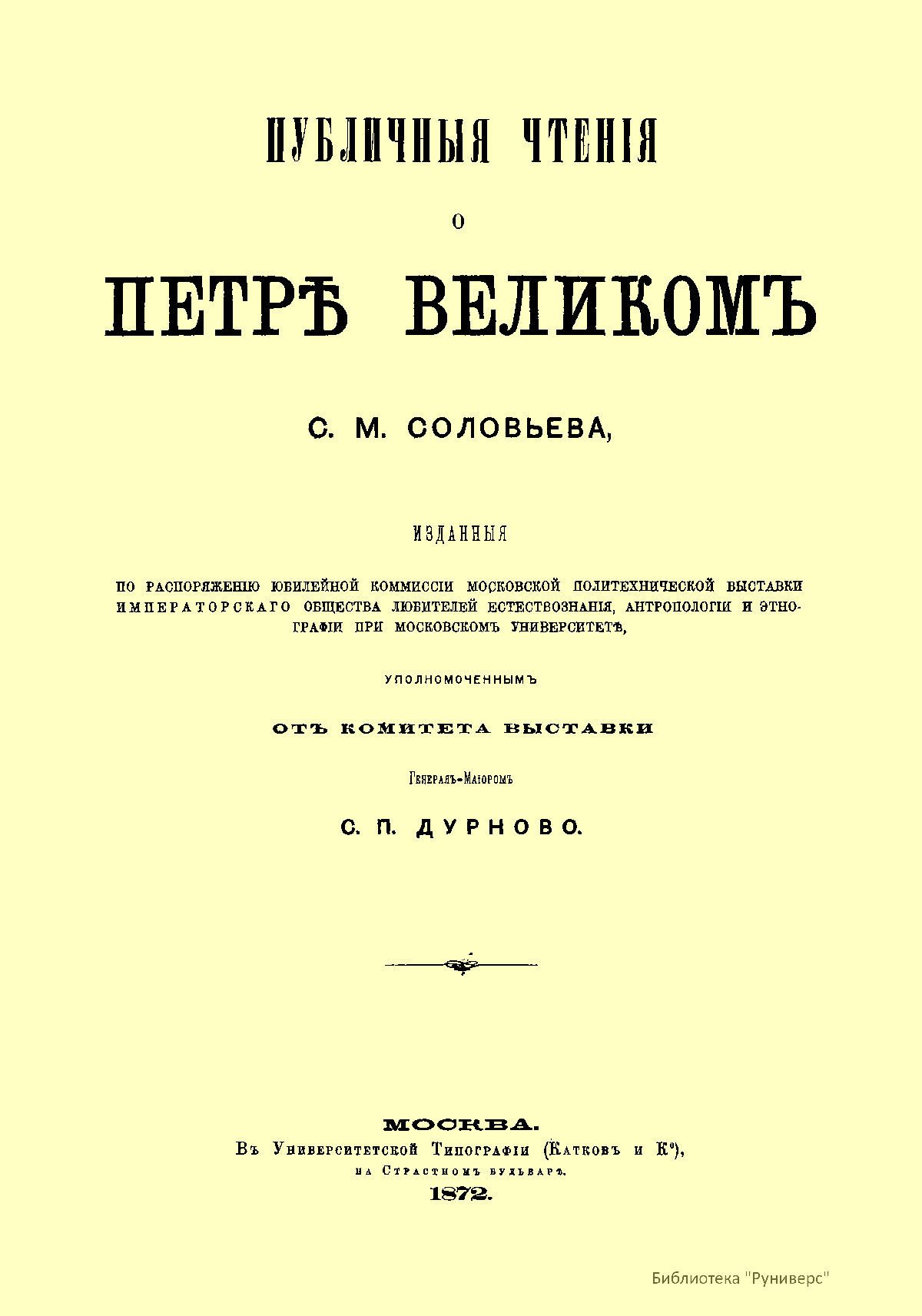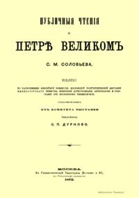 Публичныя чтенiя о Петрѣ Великомъ С.М. Соловьева