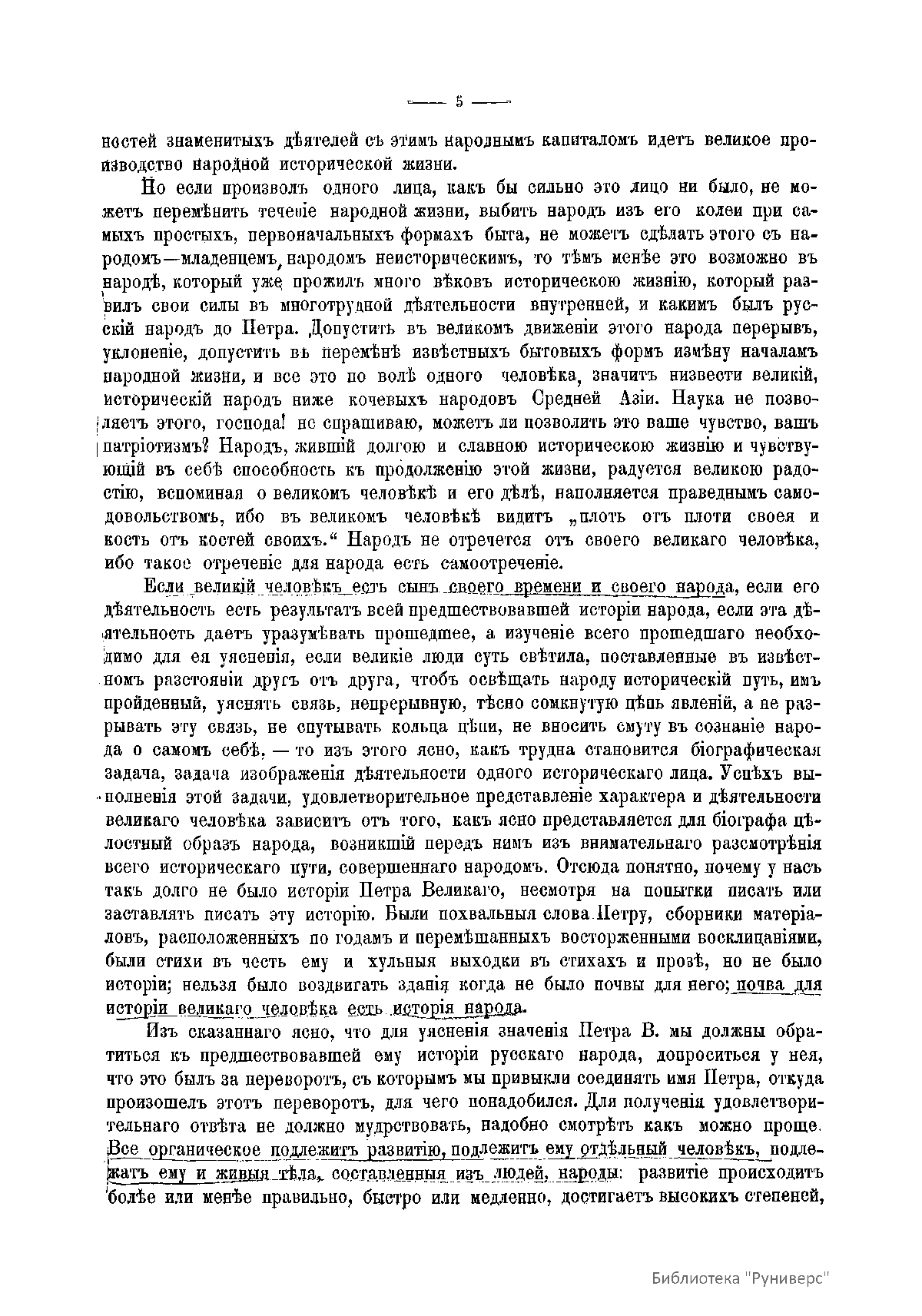 Двенадцать лекций о Петре Великом, посвященные 200-летию со дня его рождения. «Можно ли в кратком очерке обозначить деятельность небывалую в истории человечества? Нужно было обозначить деятельность человека, который прибавил в историю целый великий народ, целое великое племя, деятельность человека, который имел полное право сказать, что не жалел ничего для своего народа, который сильной рукой помог своему народу совершить переход необходимый, но страшно трудный, какого ни один народ не совершал при таких неблагоприятных обстоятельствах».