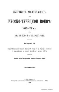 Военно-историческая комиссия Генерального штаба представляет сборник материалов по русско-турецкой войне 1877 – 1878 гг. на Балканском полуострове в 97 выпусках. Издание формирует полное представление о военных действиях и участниках этой войны. Русско-турецкая война 1877 – 1878 гг. была вызвана нежеланием Турции принять меры к улучшению положения подвластных ей христианских княжеств, обусловленному парижским трактатом 1856 г, и стремлением России укрепить свое влияние на Балканах. Способствовала освобождению народов Балканского полуострова от османского владычества. Россия объявила войну Турции 12 апреля 1877 г. Основные события: 1877 – сражение на Шипке, осада и взятие русскими войсками Плевны и Карса; 1878 – зимний переход русской армии через Балканский хребет, победы у Шипки – Шейново, Филиппополя, взятие Адрианополя. Завершилась Сан-Стефанским миром 1878 г., который обеспечил независимость балканским народам и территориальные приобретения России. Но Берлинский трактат ограничил независимость Болгарии и влияние России на Балканах.