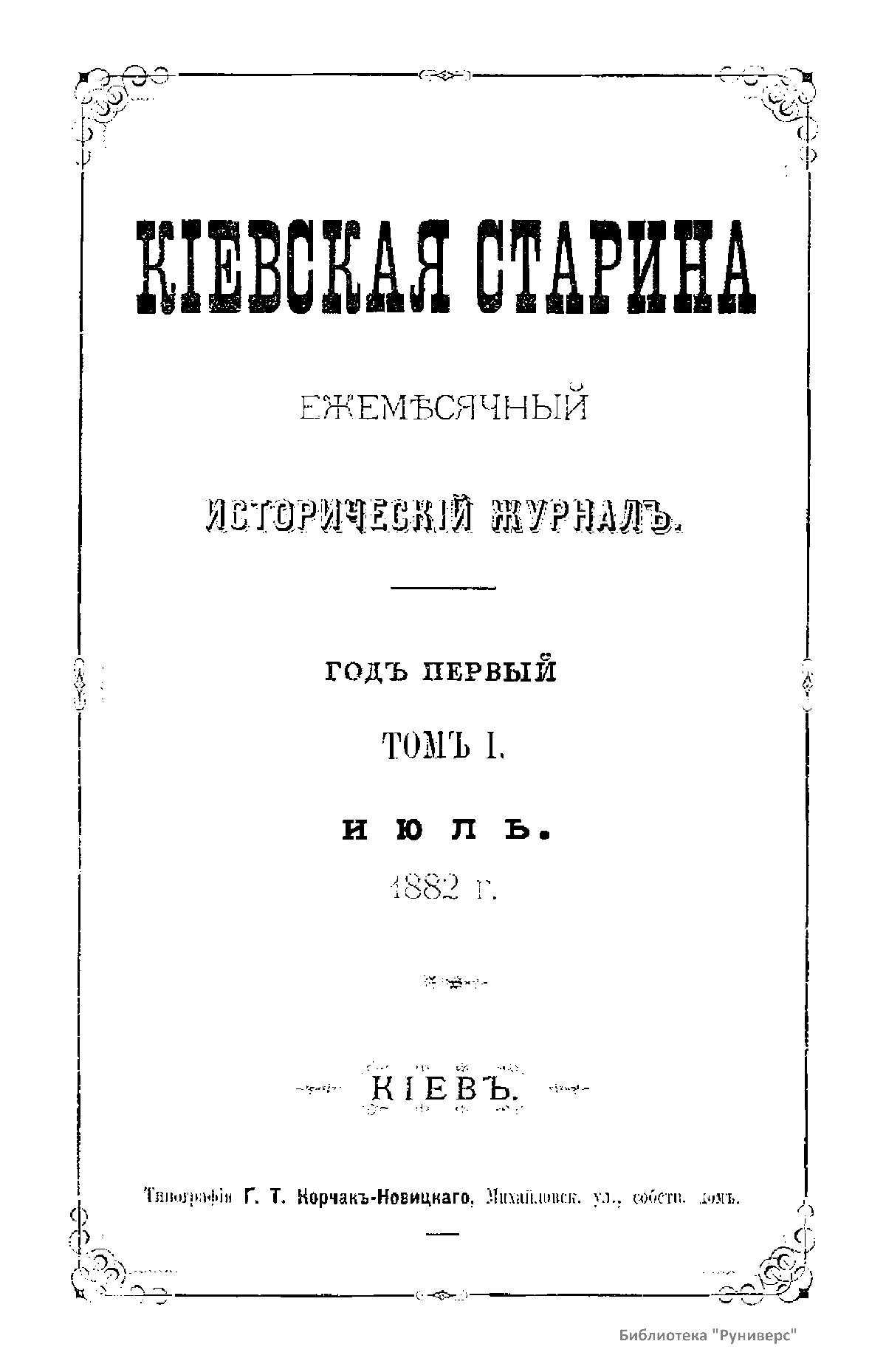 Киевская старина. Год первый. Том III. Июль-Сентябрь 1882 г.