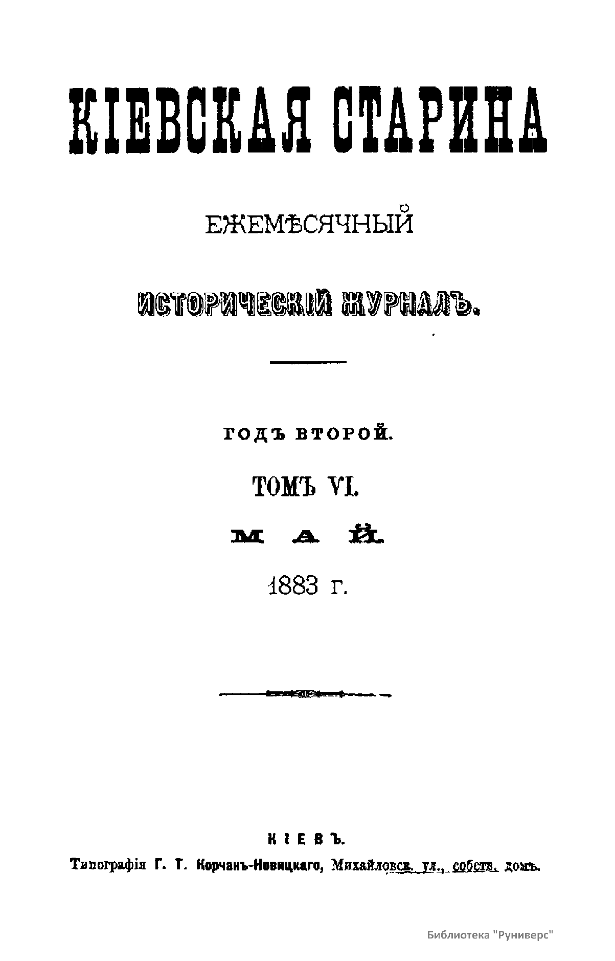 Киевская старина. Год второй. Том VI. Май-Август 1883 г.