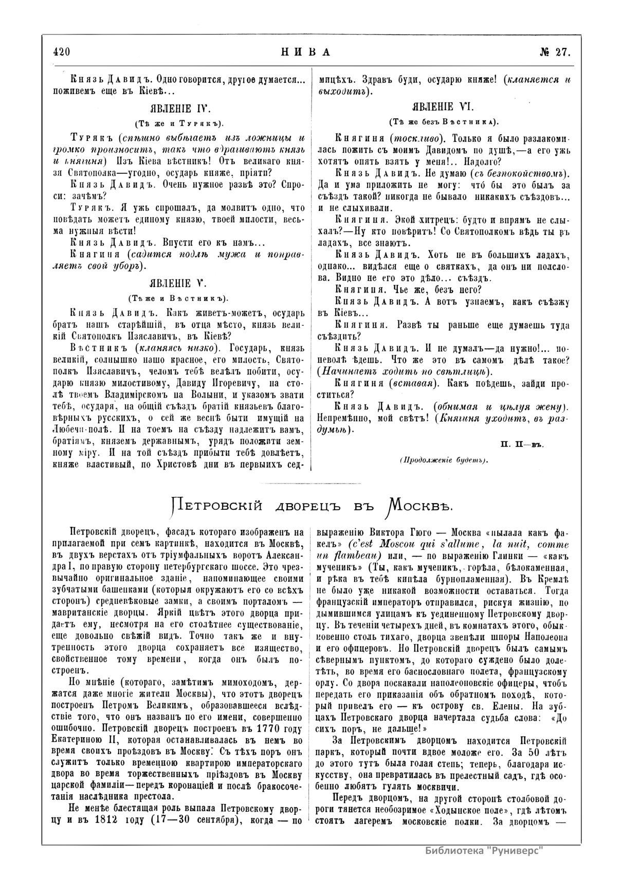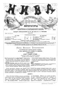 «Нива» — популярный еженедельный русский журнал с приложениями, издававшийся со второй половины XIX до начала XX века, носил подзаголовок «Журнал литературы, политики и современной жизни». Журнал был любимым детищем А. Ф. Маркса, возглавлявшего свое издательство вплоть до своей смерти в 1904 г. Позиционировалась «Нива» как иллюстрированный журнал для семейного чтения и был ориентирован, главным образом, на обывателя. В журнале публиковались литературные произведения, исторические, научно-популярные очерки, репродукции и гравюры картин современных художников. Материалы политического и общественного содержания также сопровождались многочисленными иллюстрациями. Среди известных литераторов, печатавшихся в журнале, были А. К. Толстой, Ф. И. Тютчев, Л. Н. Толстой, А. А. Фет, А. П. Чехов, Максим Горький, Корней Чуковский, Анна Ахматова, Иван Бунин и многие другие. Благодаря «Ниве» сочинения многих современных авторов добрались до самых отдаленных областей России.