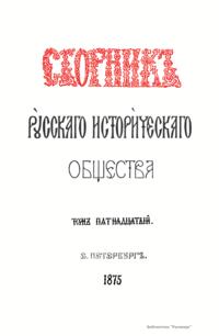 Сборникъ Русскаго историческаго общества. Томъ пятнадцатый