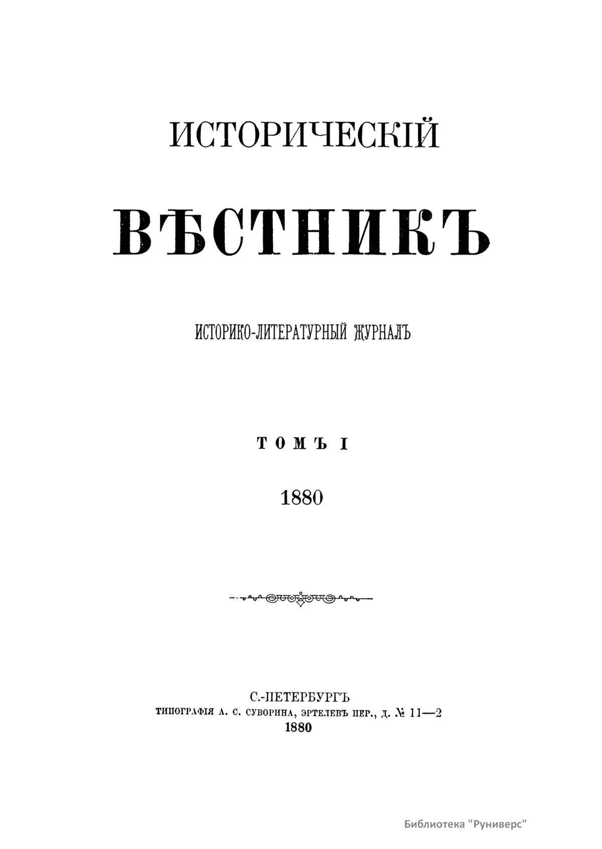 Историческiй вѣстникъ. Историко-литературный журналъ. Томъ I