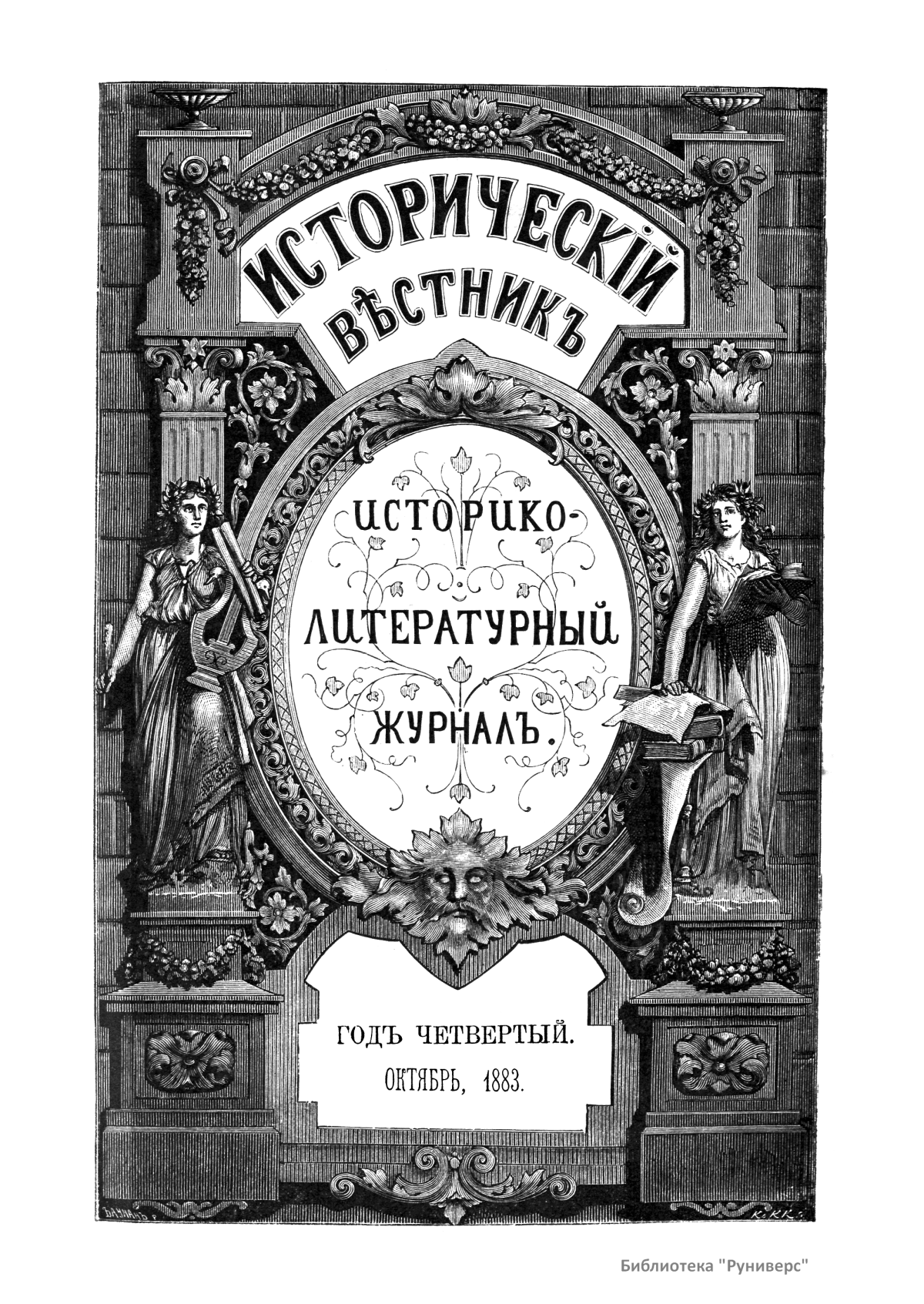 «Исторический вестник» - русский ежемесячный историко-литературный журнал. Издавался в Санкт-Петербурге с 1880-го по 1917 г. Журнал был основан А.С. Сувориным и С.Н. Шубинским с целью «знакомить читателей в живой, общедоступной форме с современным состоянием исторической науки и литературы в России и Европе». Вышло 150 тт. Каждый том состоял из трёх ежемесячных выпусков, имел свою нумерацию страниц, оглавление, список иллюстраций. Журнал приобрёл устойчивую популярность среди читателей, заняв прочное место в «триумвирате» русских исторических журналов наряду с «Русским архивом» и «Русской стариной». опережая их по количеству подписчиков. Отличием «Исторического вестника» было то, что он не помещал на своих страницах необработанных, сырых материалов. С другой стороны, журнал приближался по своему типу к журналам общелитературного образца, сочетая в себе коммерческий успех и доступное изложение материала.