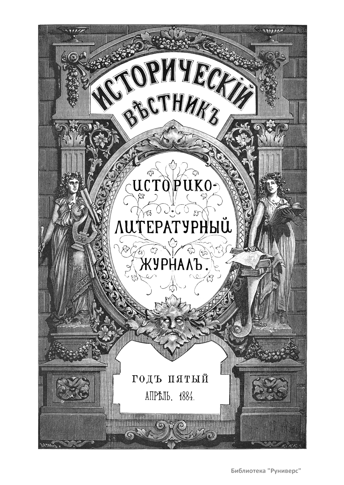 «Исторический вестник» - русский ежемесячный историко-литературный журнал. Издавался в Санкт-Петербурге с 1880-го по 1917 г. Журнал был основан А.С. Сувориным и С.Н. Шубинским с целью «знакомить читателей в живой, общедоступной форме с современным состоянием исторической науки и литературы в России и Европе». Вышло 150 тт. Каждый том состоял из трёх ежемесячных выпусков, имел свою нумерацию страниц, оглавление, список иллюстраций. Журнал приобрёл устойчивую популярность среди читателей, заняв прочное место в «триумвирате» русских исторических журналов наряду с «Русским архивом» и «Русской стариной». опережая их по количеству подписчиков. Отличием «Исторического вестника» было то, что он не помещал на своих страницах необработанных, сырых материалов. С другой стороны, журнал приближался по своему типу к журналам общелитературного образца, сочетая в себе коммерческий успех и доступное изложение материала.