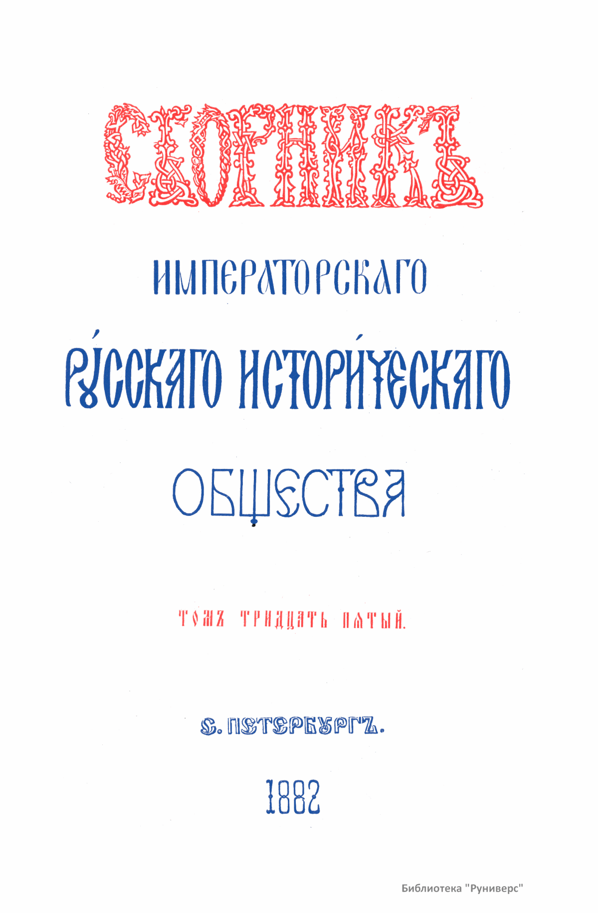 Сборникъ Русскаго историческаго общества. Томъ тридцать пятый