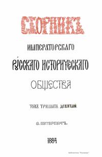Сборникъ Русскаго историческаго общества. Томъ тридцать девятый