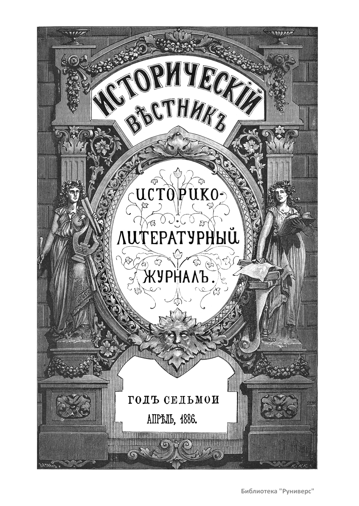«Исторический вестник» - русский ежемесячный историко-литературный журнал. Издавался в Санкт-Петербурге с 1880-го по 1917 г. Журнал был основан А.С. Сувориным и С.Н. Шубинским с целью «знакомить читателей в живой, общедоступной форме с современным состоянием исторической науки и литературы в России и Европе». Вышло 150 тт. Каждый том состоял из трёх ежемесячных выпусков, имел свою нумерацию страниц, оглавление, список иллюстраций. Журнал приобрёл устойчивую популярность среди читателей, заняв прочное место в «триумвирате» русских исторических журналов наряду с «Русским архивом» и «Русской стариной». опережая их по количеству подписчиков. Отличием «Исторического вестника» было то, что он не помещал на своих страницах необработанных, сырых материалов. С другой стороны, журнал приближался по своему типу к журналам общелитературного образца, сочетая в себе коммерческий успех и доступное изложение материала.