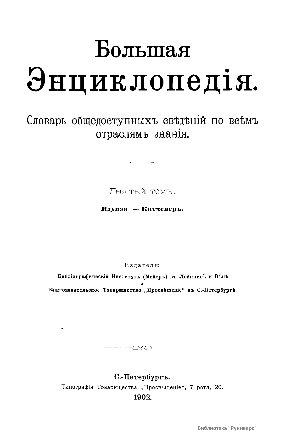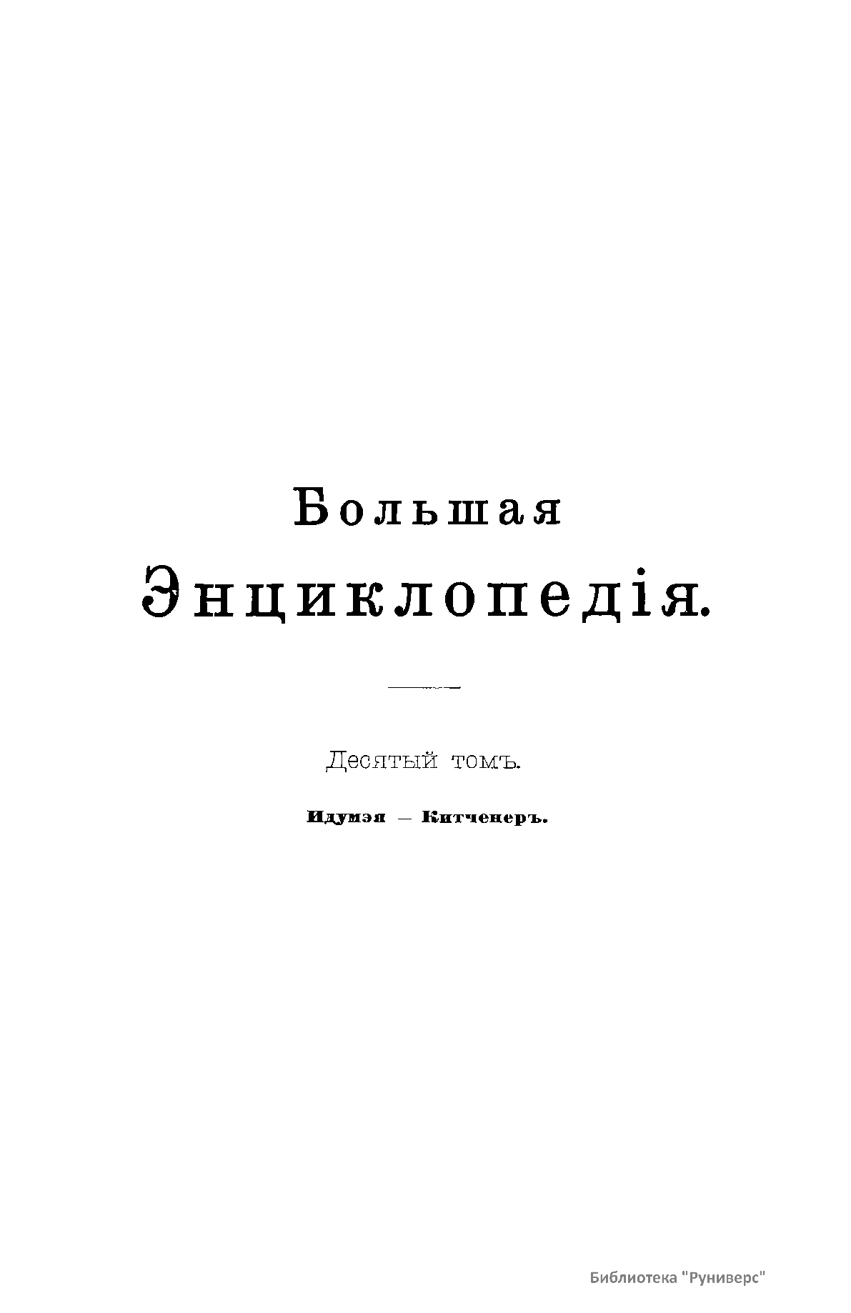Большая Энциклопедiя. Десятый томъ. Идумэя - Китченеръ