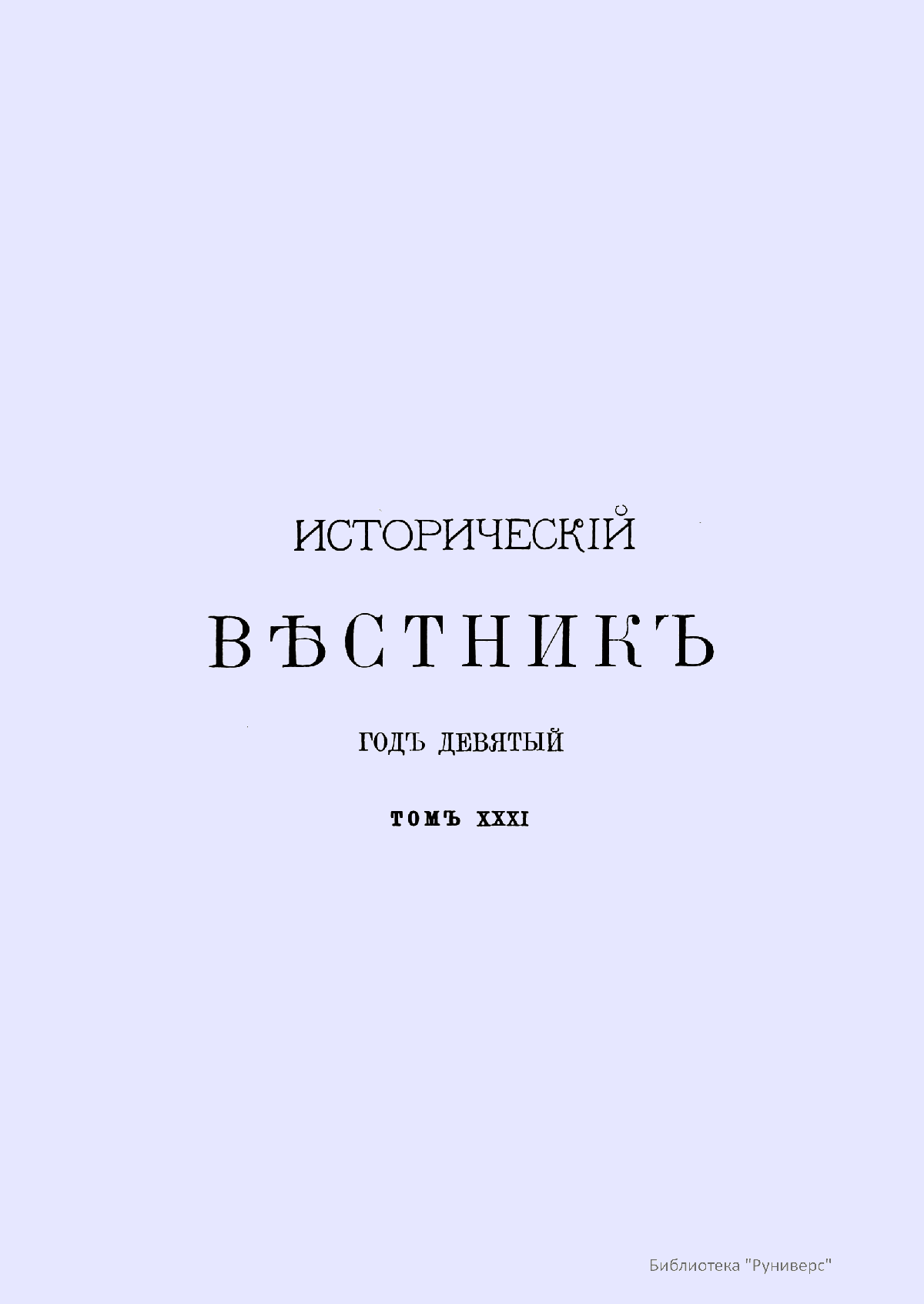 Исторический вестник. Историко-литературный журнал. Том XXXI