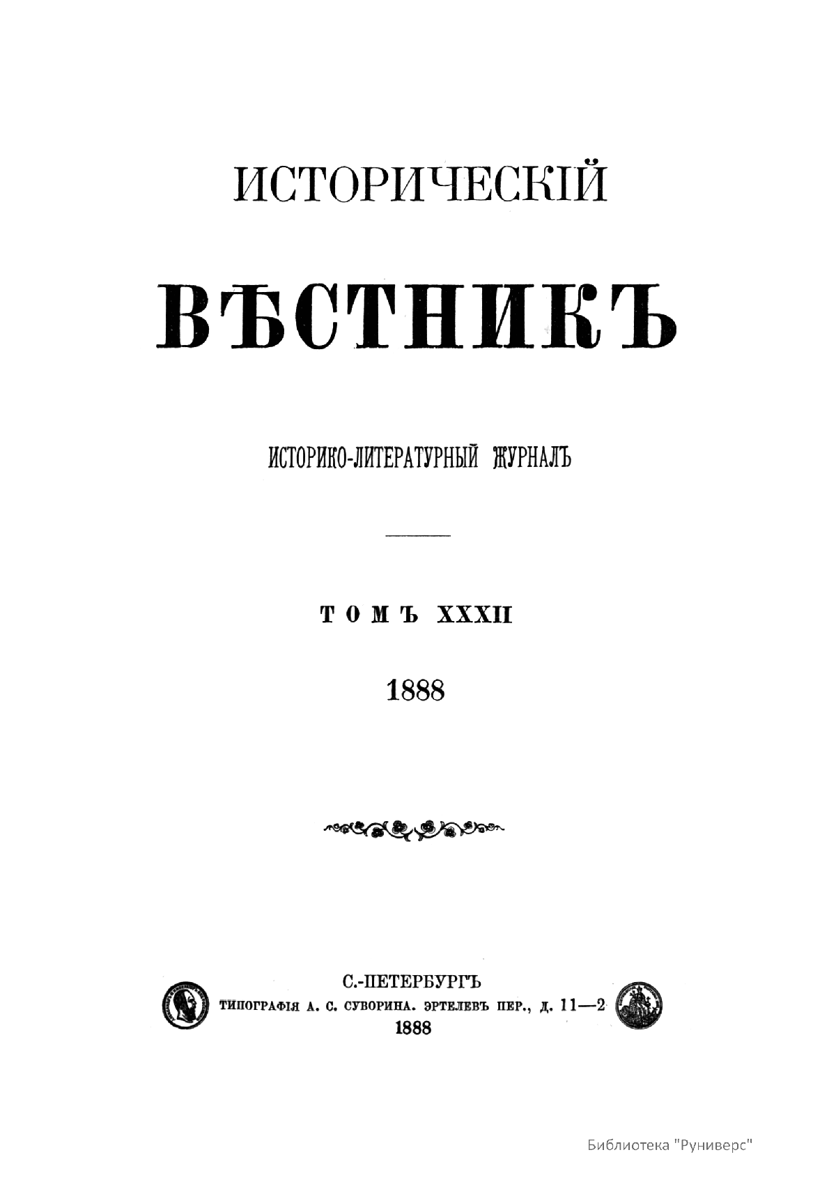 Историческiй вѣстникъ. Историко-литературный журналъ. Томъ XXXII
