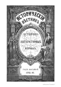 «Исторический вестник» - русский ежемесячный историко-литературный журнал. Издавался в Санкт-Петербурге с 1880-го по 1917 г. Журнал был основан А.С. Сувориным и С.Н. Шубинским с целью «знакомить читателей в живой, общедоступной форме с современным состоянием исторической науки и литературы в России и Европе». Вышло 150 тт. Каждый том состоял из трёх ежемесячных выпусков, имел свою нумерацию страниц, оглавление, список иллюстраций. Журнал приобрёл устойчивую популярность среди читателей, заняв прочное место в «триумвирате» русских исторических журналов наряду с «Русским архивом» и «Русской стариной». опережая их по количеству подписчиков. Отличием «Исторического вестника» было то, что он не помещал на своих страницах необработанных, сырых материалов. С другой стороны, журнал приближался по своему типу к журналам общелитературного образца, сочетая в себе коммерческий успех и доступное изложение материала.