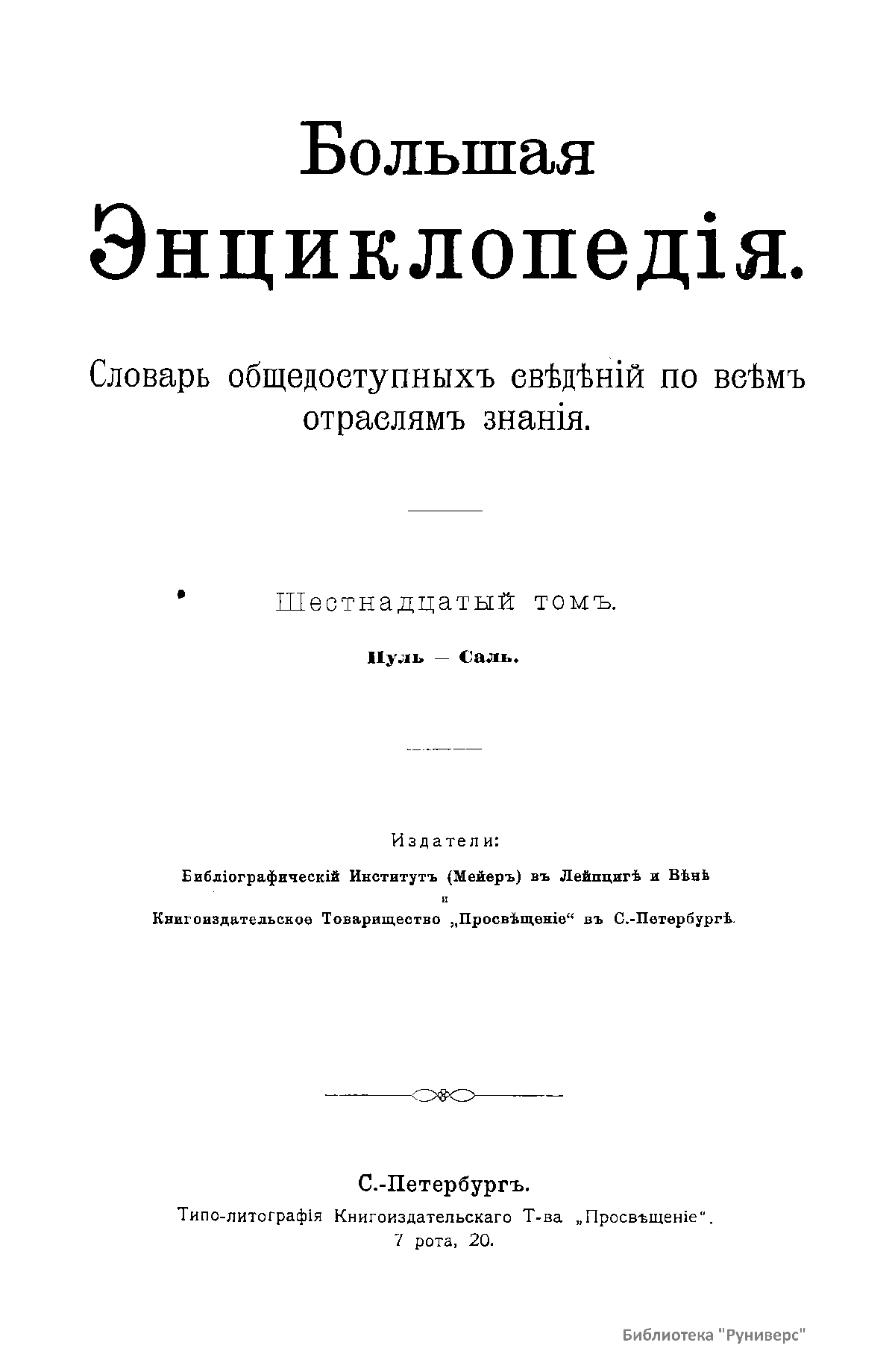 Большая Энциклопедiя. Шестнадцатый томъ. Пуль - Саль