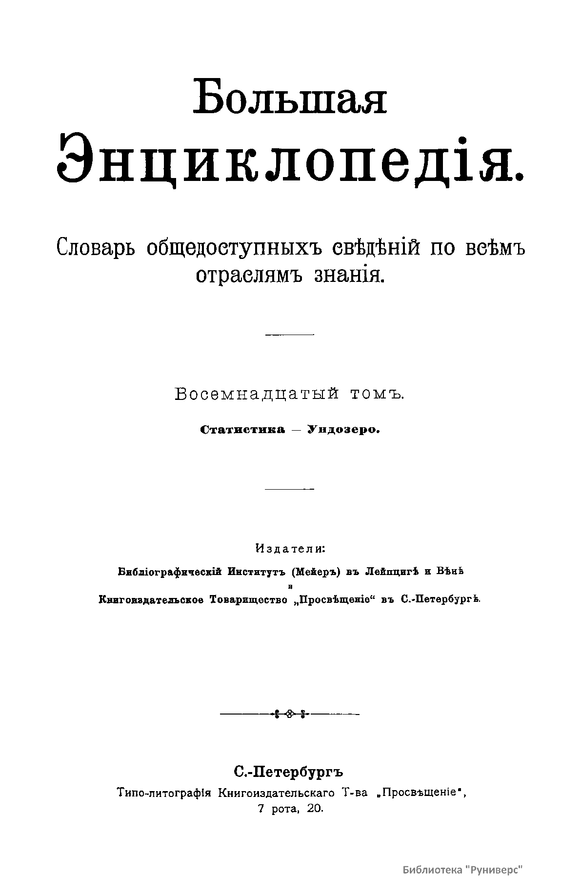 Большая Энциклопедiя. Восемнадцатый томъ. Статистика - Ундозеро