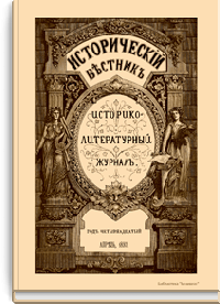 «Исторический вестник» - русский ежемесячный историко-литературный журнал. Издавался в Санкт-Петербурге с 1880-го по 1917 г. Журнал был основан А.С. Сувориным и С.Н. Шубинским с целью «знакомить читателей в живой, общедоступной форме с современным состоянием исторической науки и литературы в России и Европе». Вышло 150 тт. Каждый том состоял из трёх ежемесячных выпусков, имел свою нумерацию страниц, оглавление, список иллюстраций. Журнал приобрёл устойчивую популярность среди читателей, заняв прочное место в «триумвирате» русских исторических журналов наряду с «Русским архивом» и «Русской стариной». опережая их по количеству подписчиков. Отличием «Исторического вестника» было то, что он не помещал на своих страницах необработанных, сырых материалов. С другой стороны, журнал приближался по своему типу к журналам общелитературного образца, сочетая в себе коммерческий успех и доступное изложение материала.