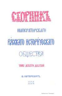 Сборникъ Русскаго историческаго общества. Томъ девяти десятый