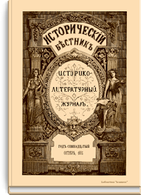 «Исторический вестник» - русский ежемесячный историко-литературный журнал. Издавался в Санкт-Петербурге с 1880-го по 1917 г. Журнал был основан А.С. Сувориным и С.Н. Шубинским с целью «знакомить читателей в живой, общедоступной форме с современным состоянием исторической науки и литературы в России и Европе». Вышло 150 тт. Каждый том состоял из трёх ежемесячных выпусков, имел свою нумерацию страниц, оглавление, список иллюстраций. Журнал приобрёл устойчивую популярность среди читателей, заняв прочное место в «триумвирате» русских исторических журналов наряду с «Русским архивом» и «Русской стариной». опережая их по количеству подписчиков. Отличием «Исторического вестника» было то, что он не помещал на своих страницах необработанных, сырых материалов. С другой стороны, журнал приближался по своему типу к журналам общелитературного образца, сочетая в себе коммерческий успех и доступное изложение материала.