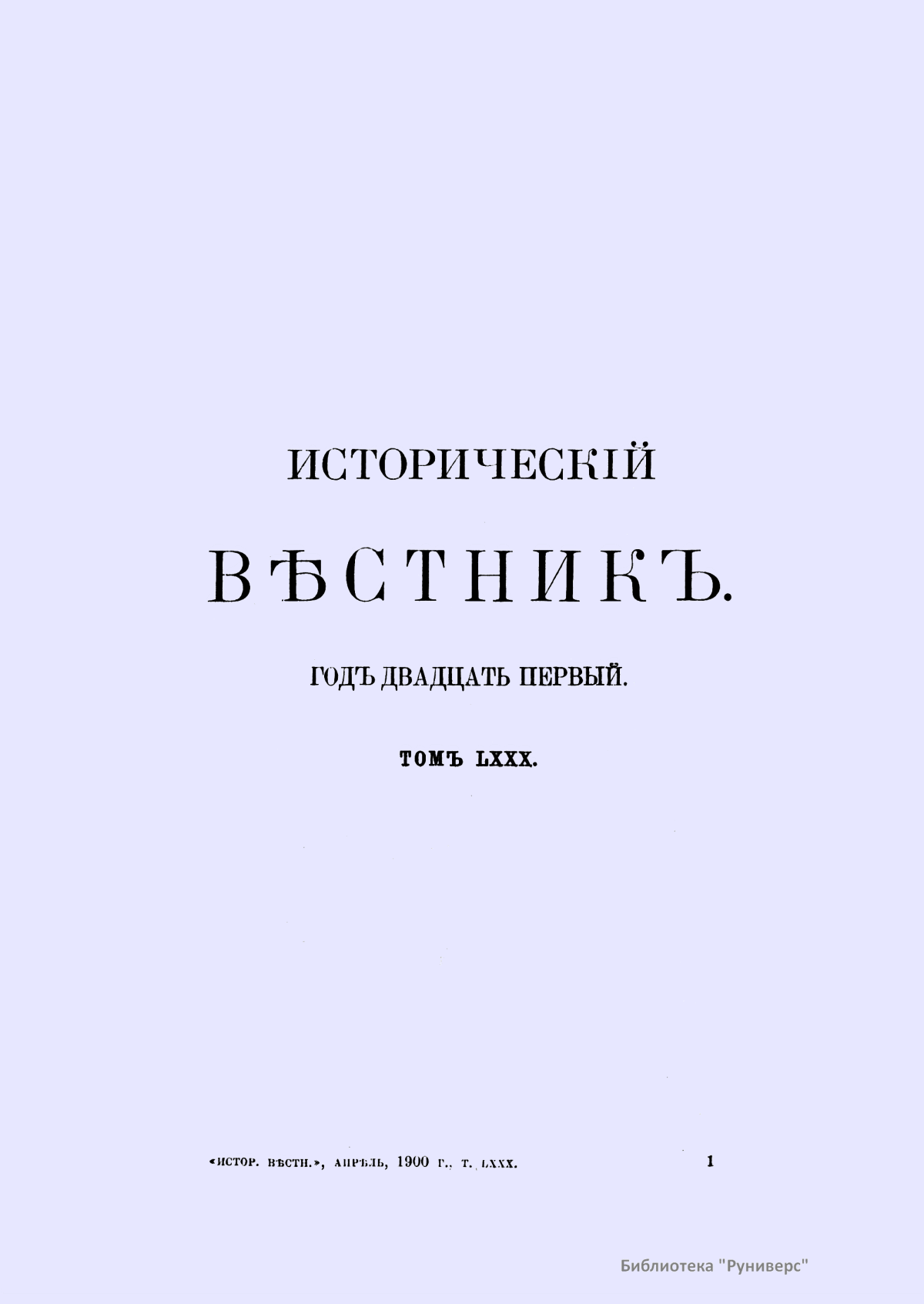 Исторический вестник. Историко-литературный журнал. Том LXXX