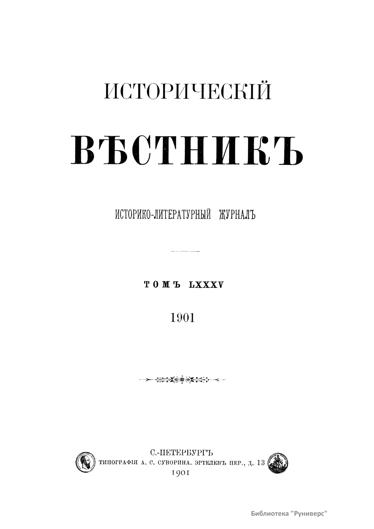Исторический вестник. Историко-литературный журнал. Том LXXXV