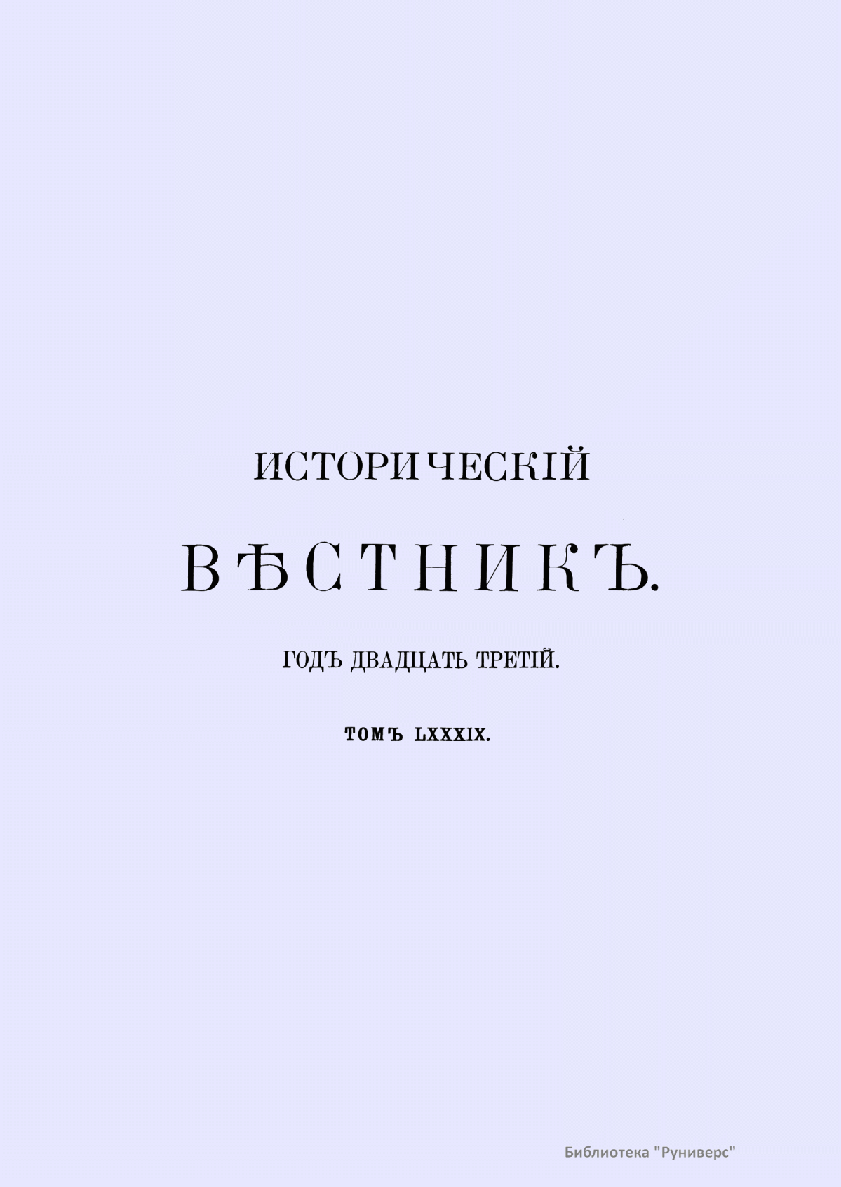 Исторический вестник. Историко-литературный журнал. Том LXXXIX