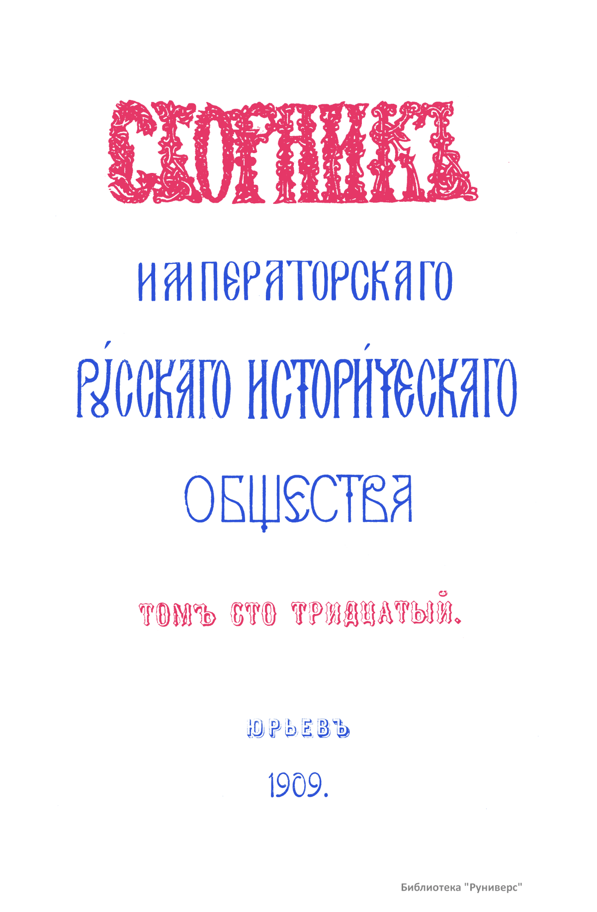 Сборникъ Русскаго историческаго общества. Томъ сто тридцатый
