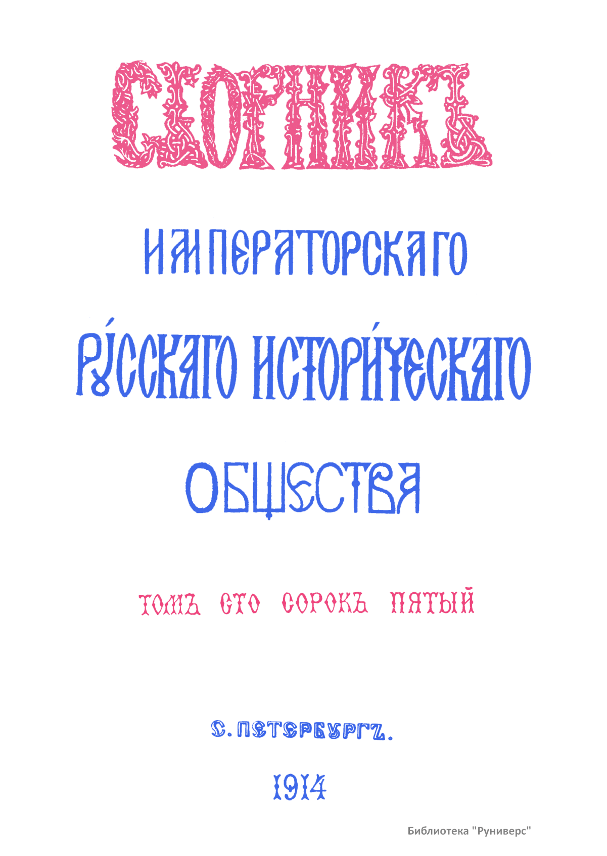 Сборникъ Русскаго историческаго общества. Томъ сто сорокъ пятый