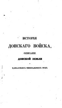 Исторiя Донскаго войска, описанiе Донской земли и Кавказскихъ Минеральныхъ водъ