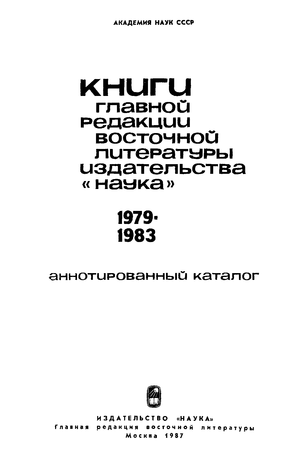 Книги главной редакции восточной литературы издательства "Наука". 1979-1983. Аннотированный каталог