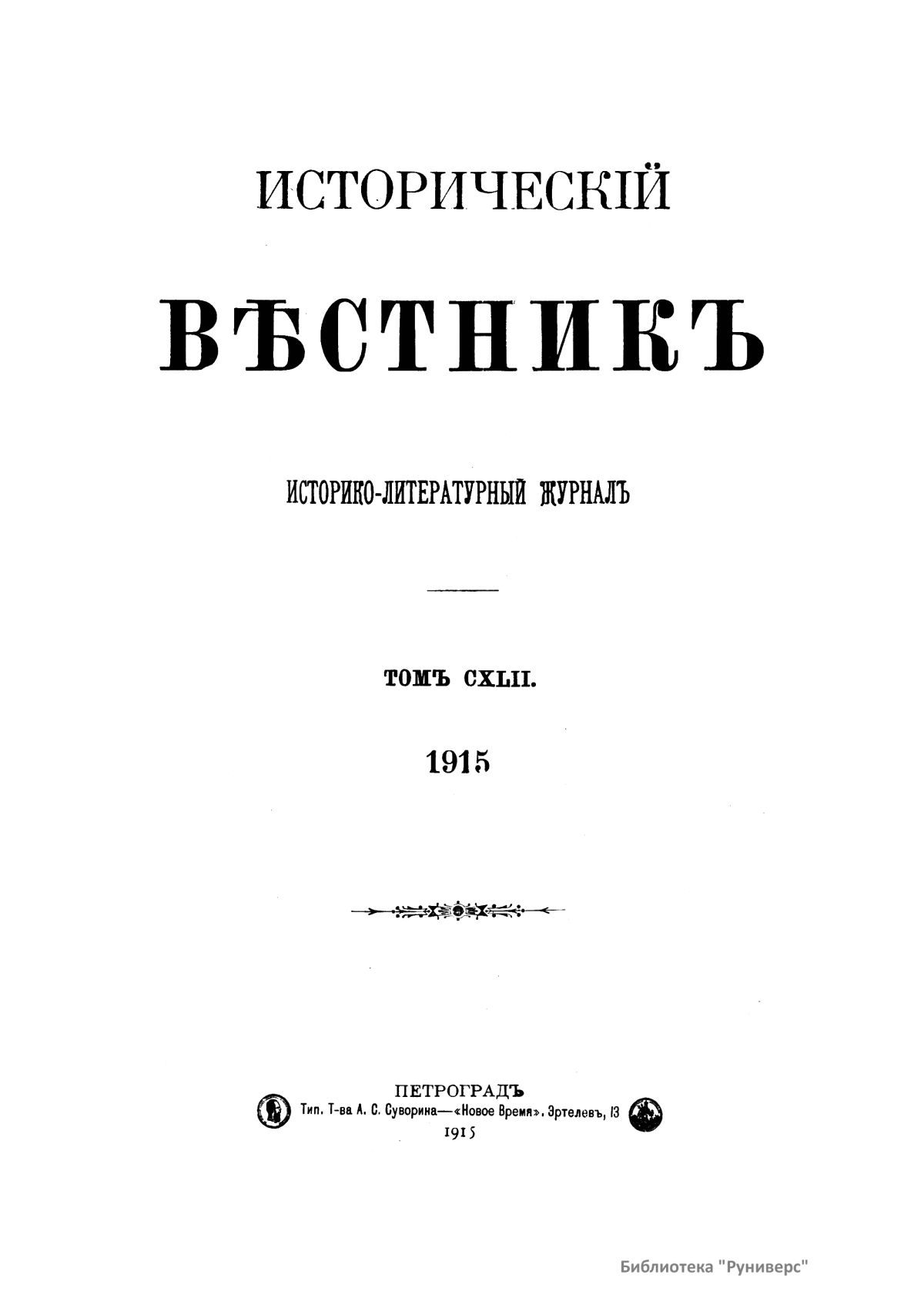 Исторический вестник. Историко-литературный журнал. Том CXLII