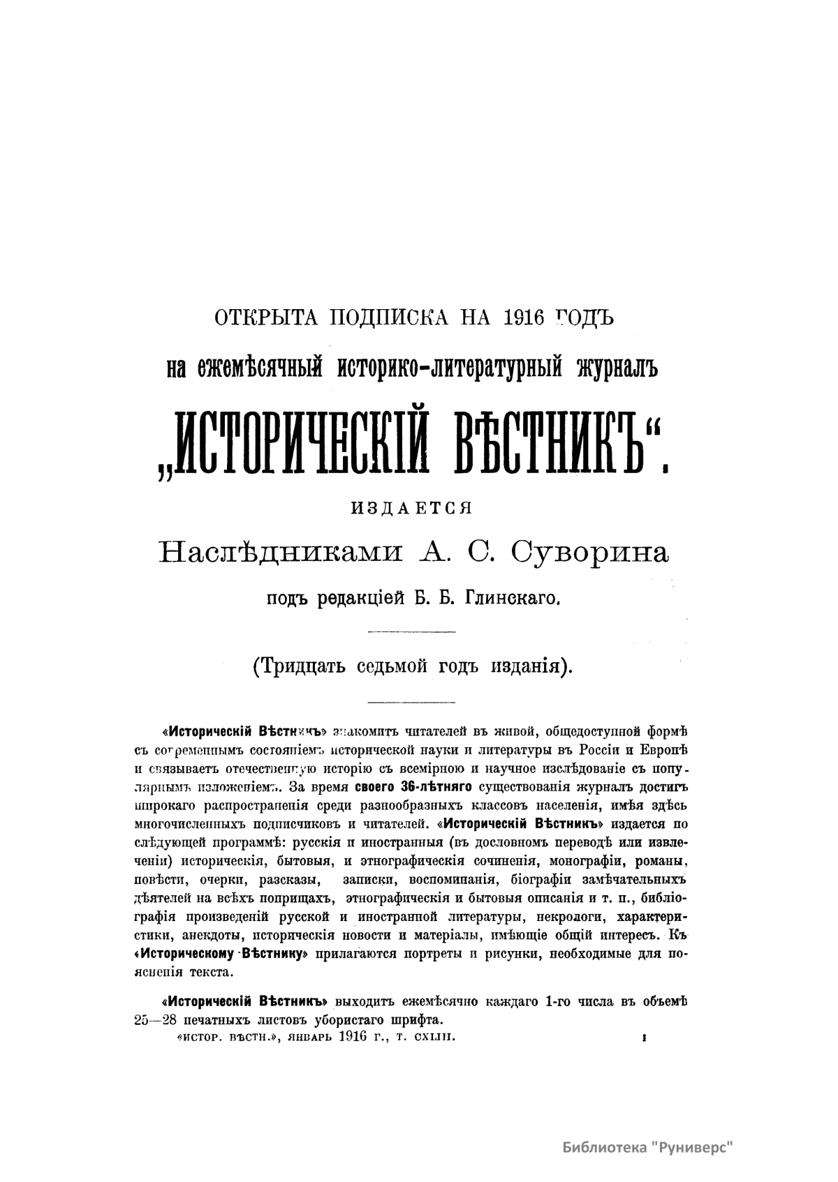 Исторический вестник. Историко-литературный журнал. Том CXLIII