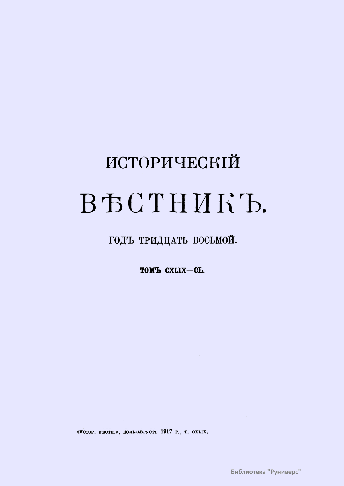 Исторический вестник. Историко-литературный журнал. Том CXLIX-CL