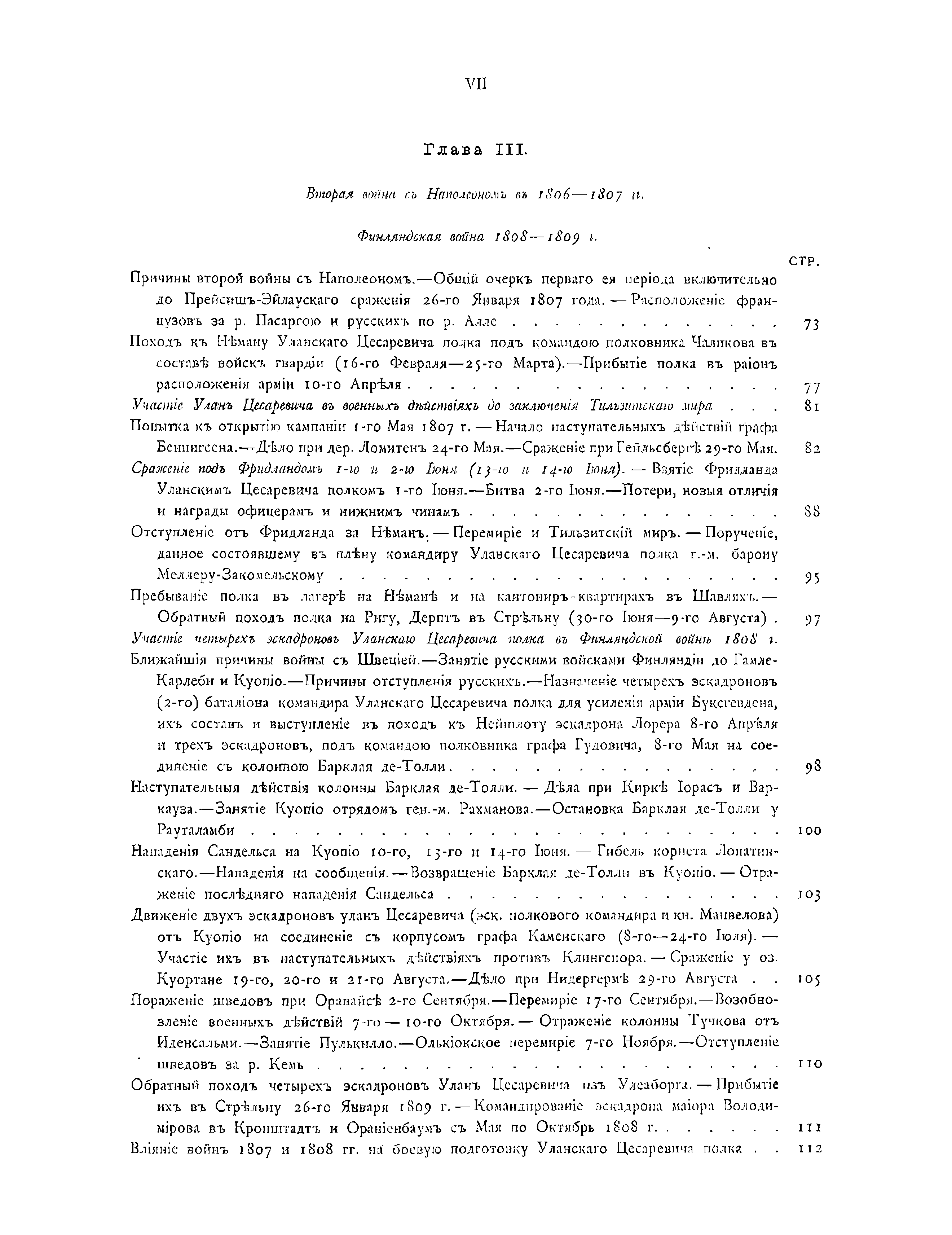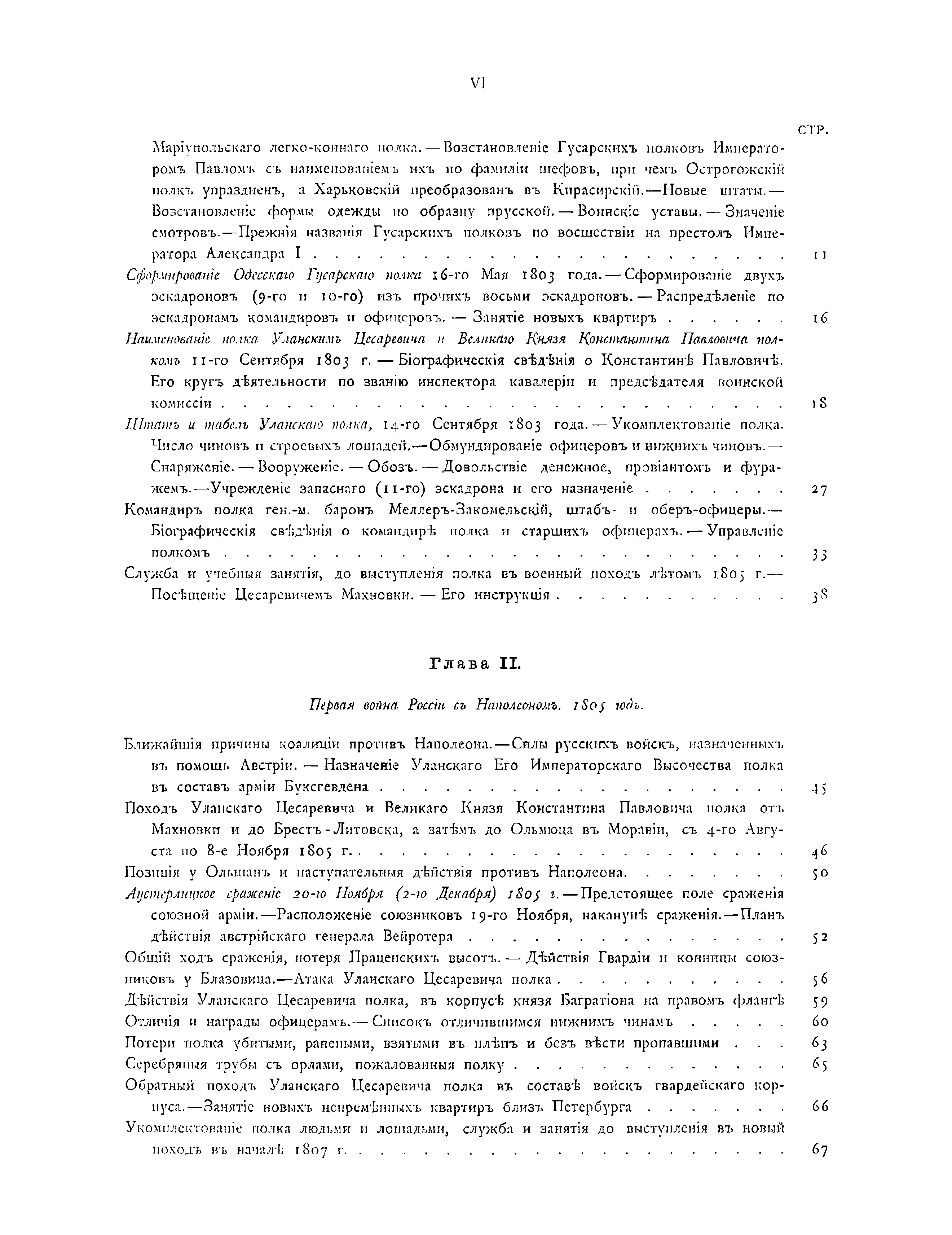 Документальное описание боевых действий полка и знаменательных исторических со-бытий, связанных с ним, за период 1803 – 1825 годов. Приведены описания униформы, вооружения и организации полка, собрание выписок из архивных документов по его истории, списки личного состава полка, кавалеров различных знаков отличия и пр.