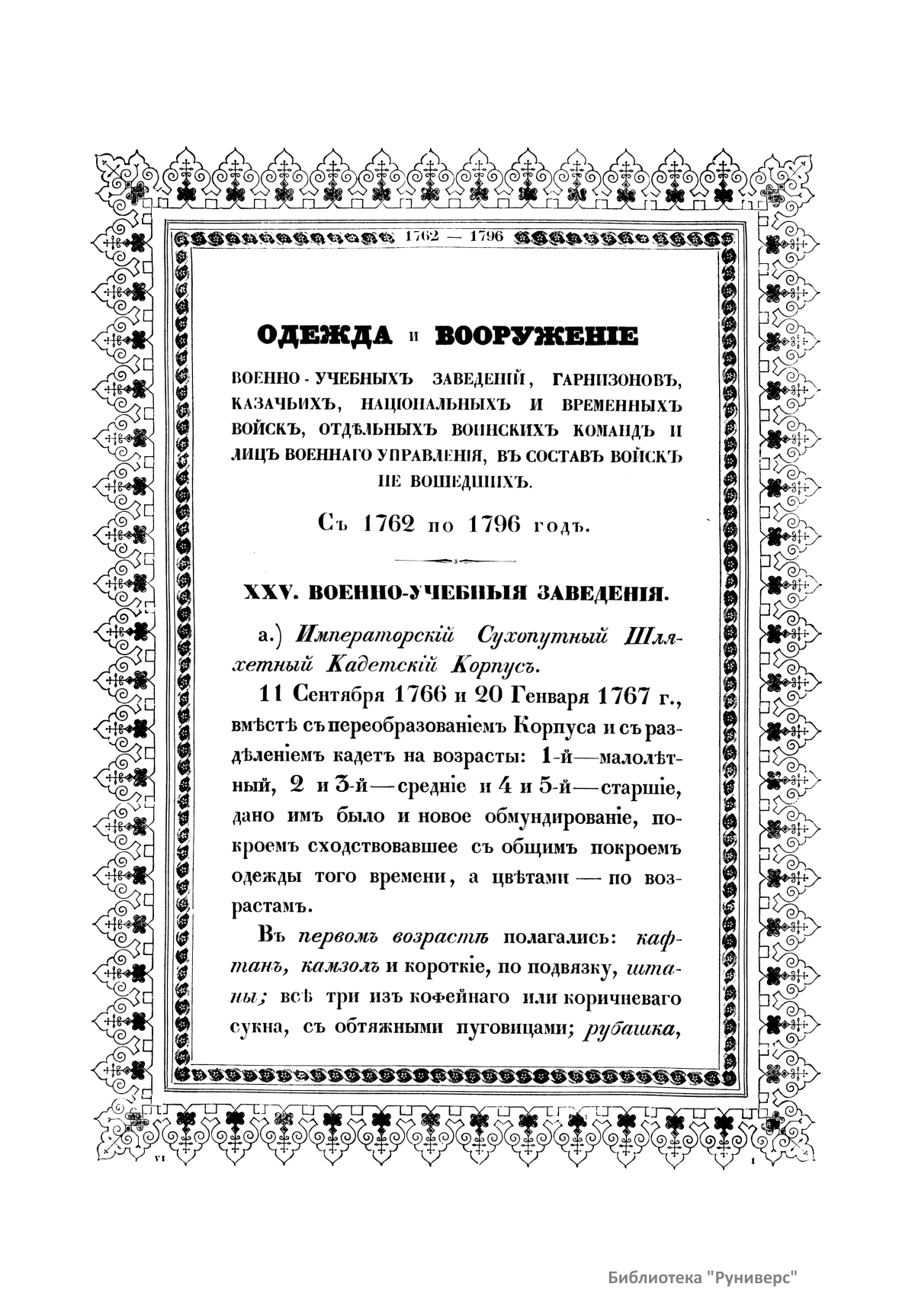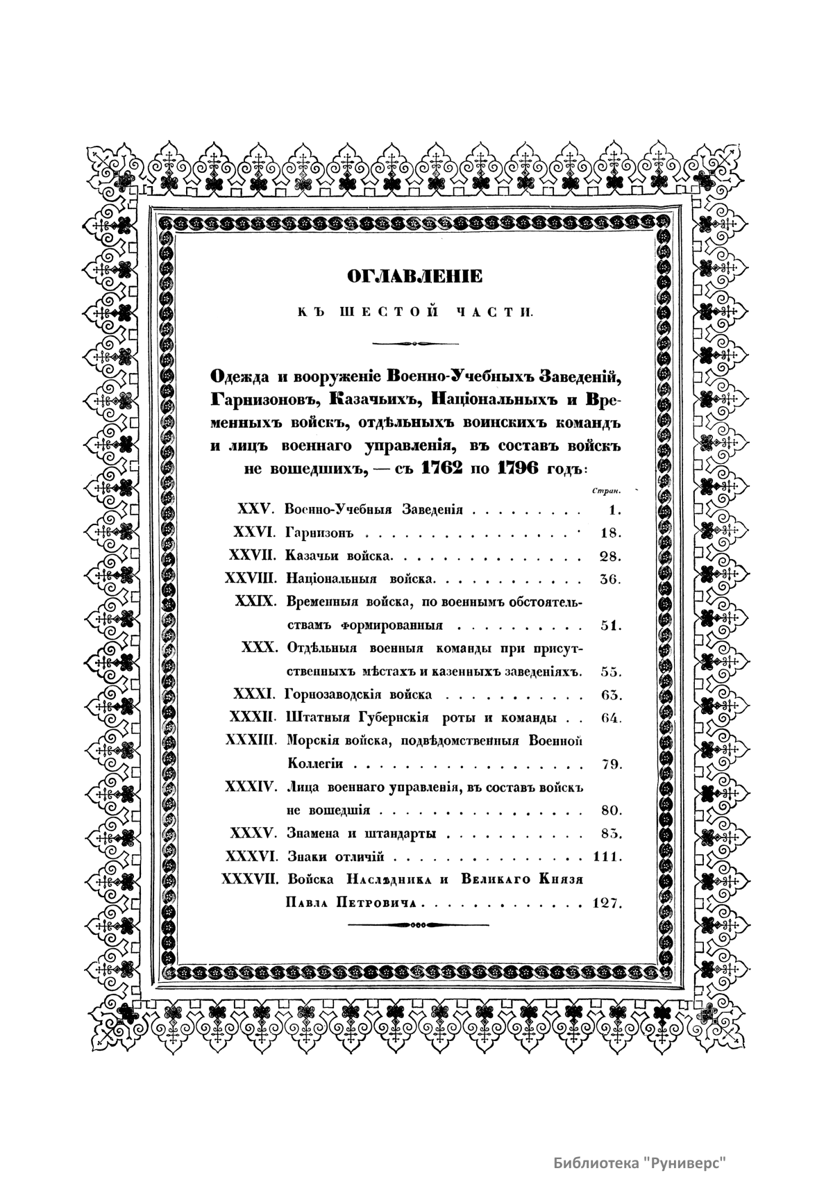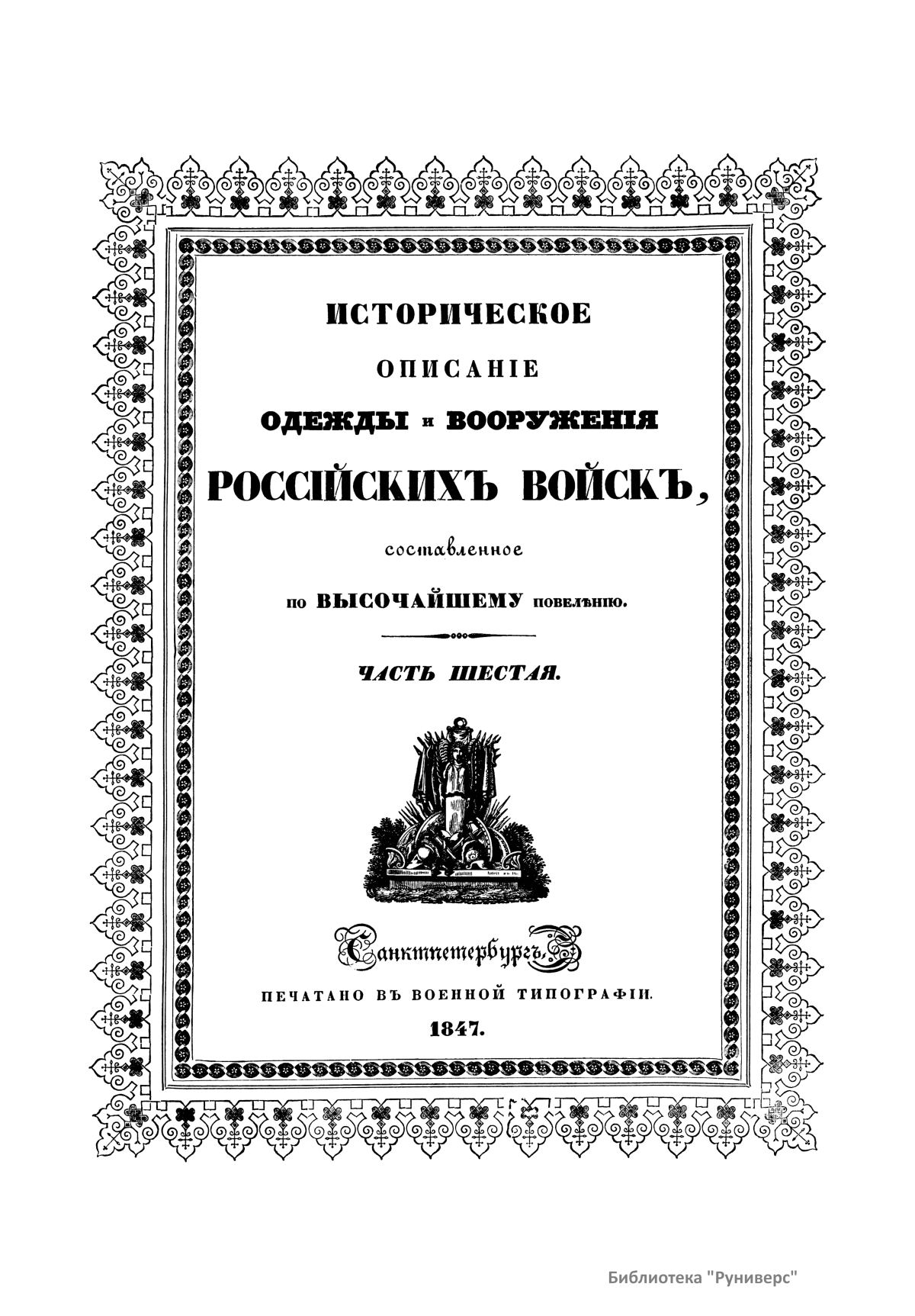 Историческое описанiе одежды и вооруженiя Россiйскихъ войскъ. Часть шестая
