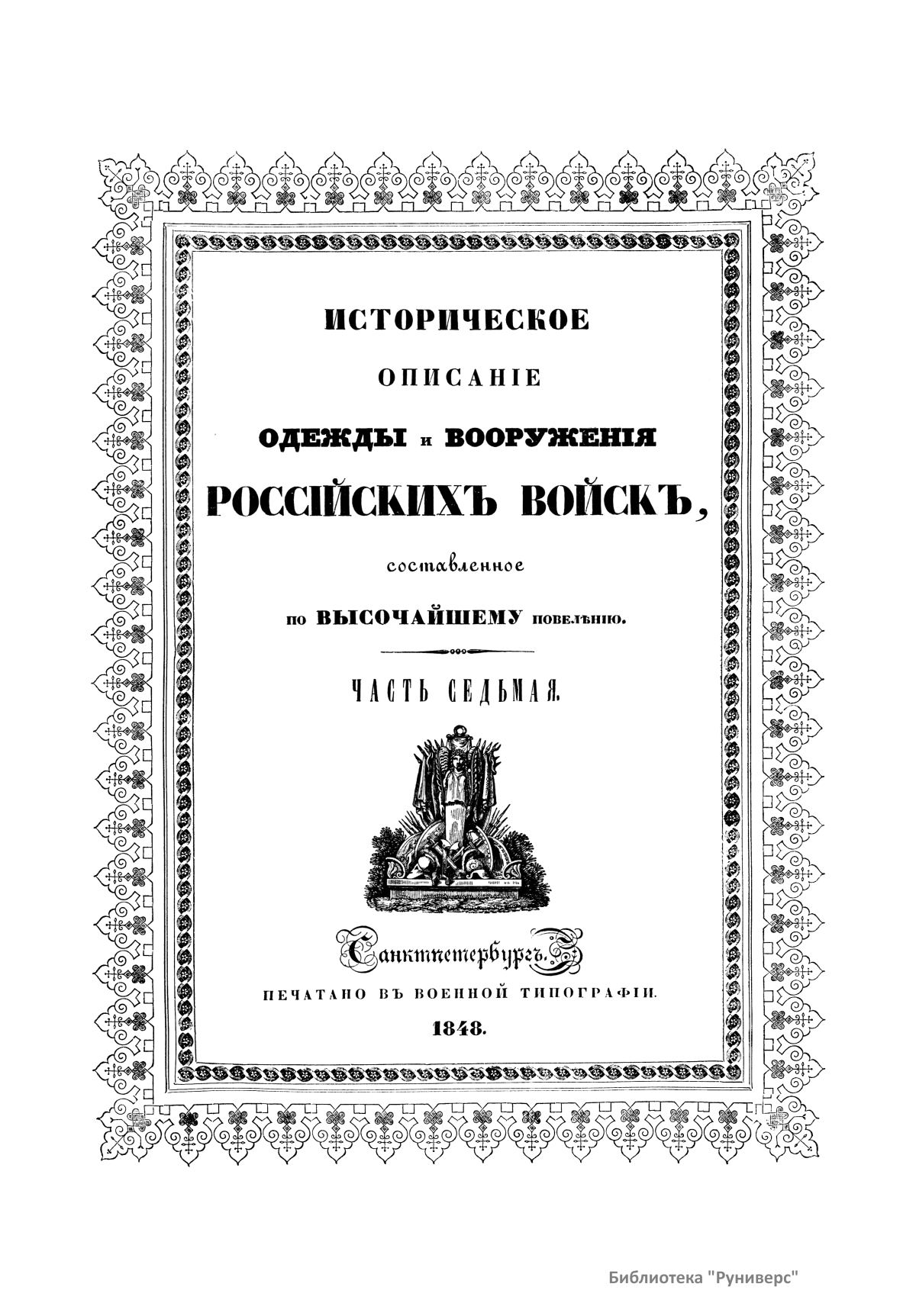 Историческое описанiе одежды и вооруженiя Россiйскихъ войскъ. Часть седьмая