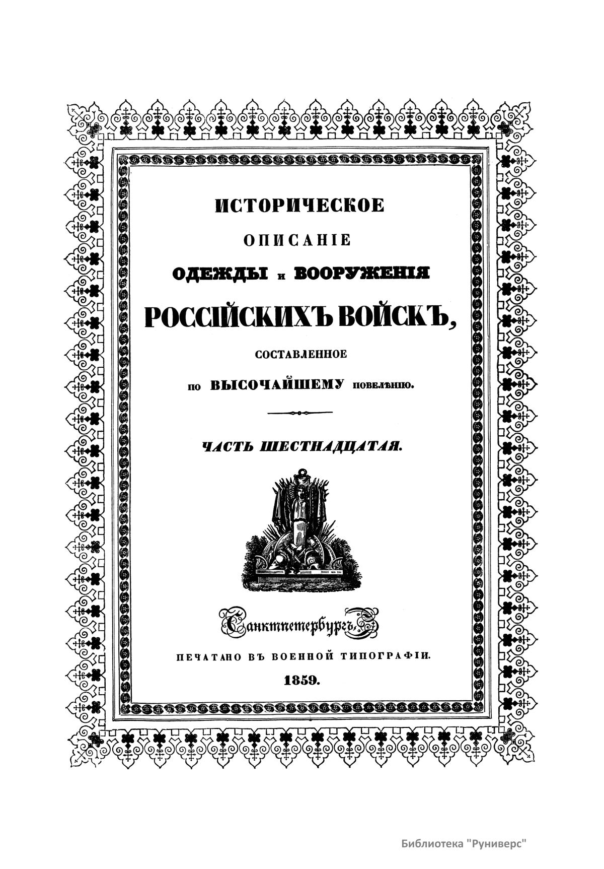 Историческое описание одежды и вооружения Российских войск. Часть шестнадцатая