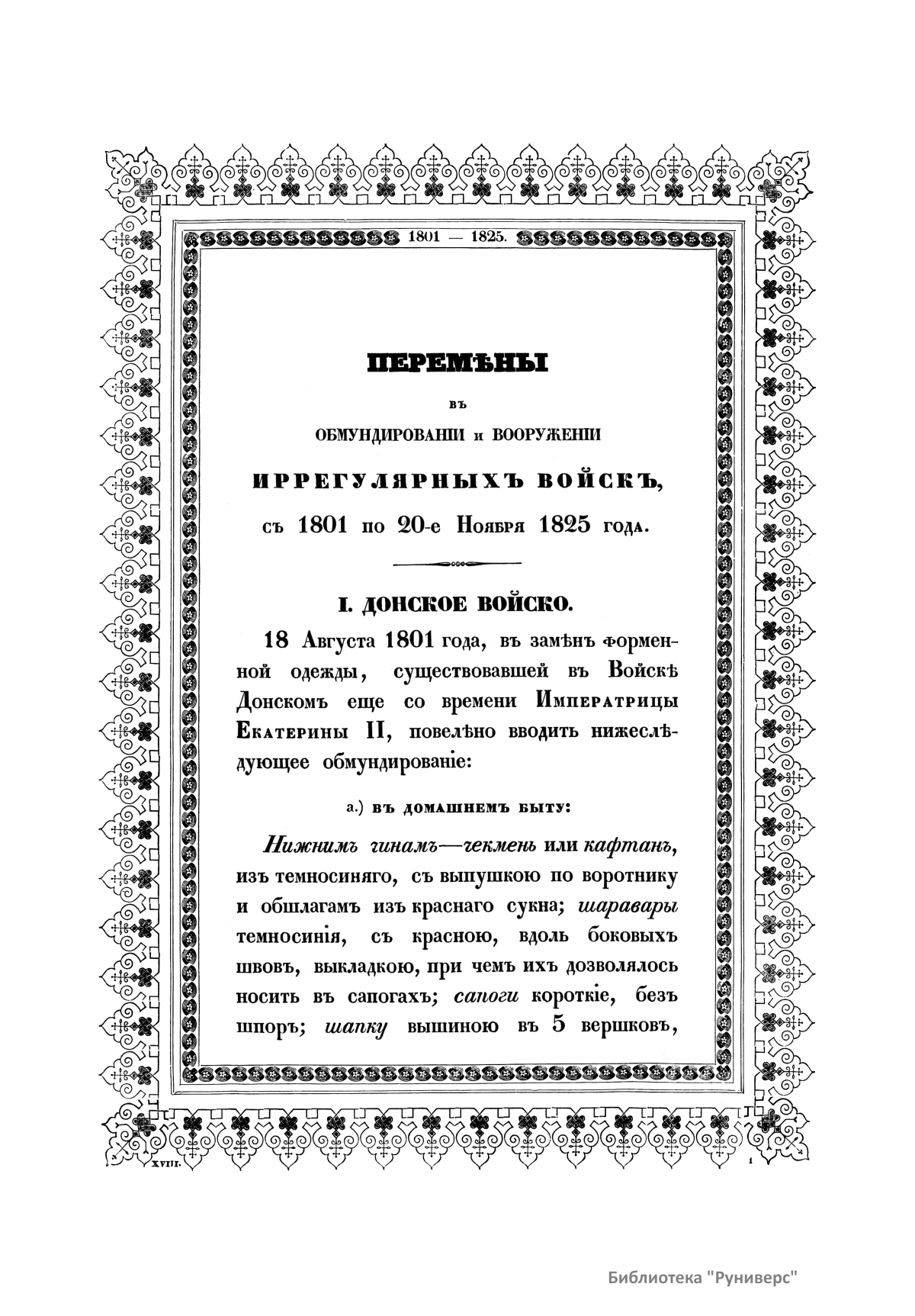 Историческое описанiе одежды и вооруженiя Россiйскихъ войскъ. Часть осьмнадцатая