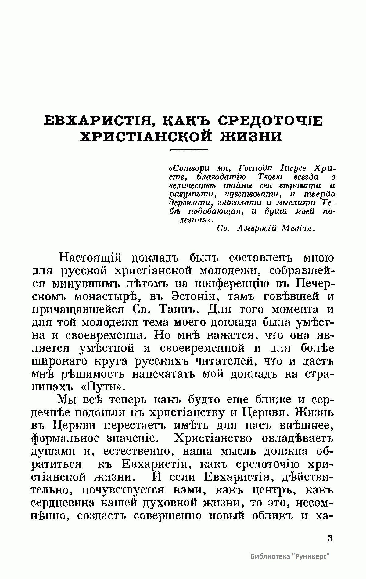 «Путь: Орган русской религиозной мысли» – журнал, издававшийся в Париже с сентября 1925 г. по март 1940 г., собравший на своих страницах все философские и богословские силы русской эмиграции. В редакционной статье «Духовные задачи русской эмиграции» («Путь», № 1. Сентябрь 1925 г.) отмечалось, что журнал ставит своей целью сохранение преемственности в процессе существования русской духовной культуры, а также стремится к преодолению сформировавшейся к тому времени эмигрантской психологии, сильно политизированной и противоречивой в своем отношении к Русской Православной Церкви и Советской России, что создавало угрозу раскола русской эмиграции.