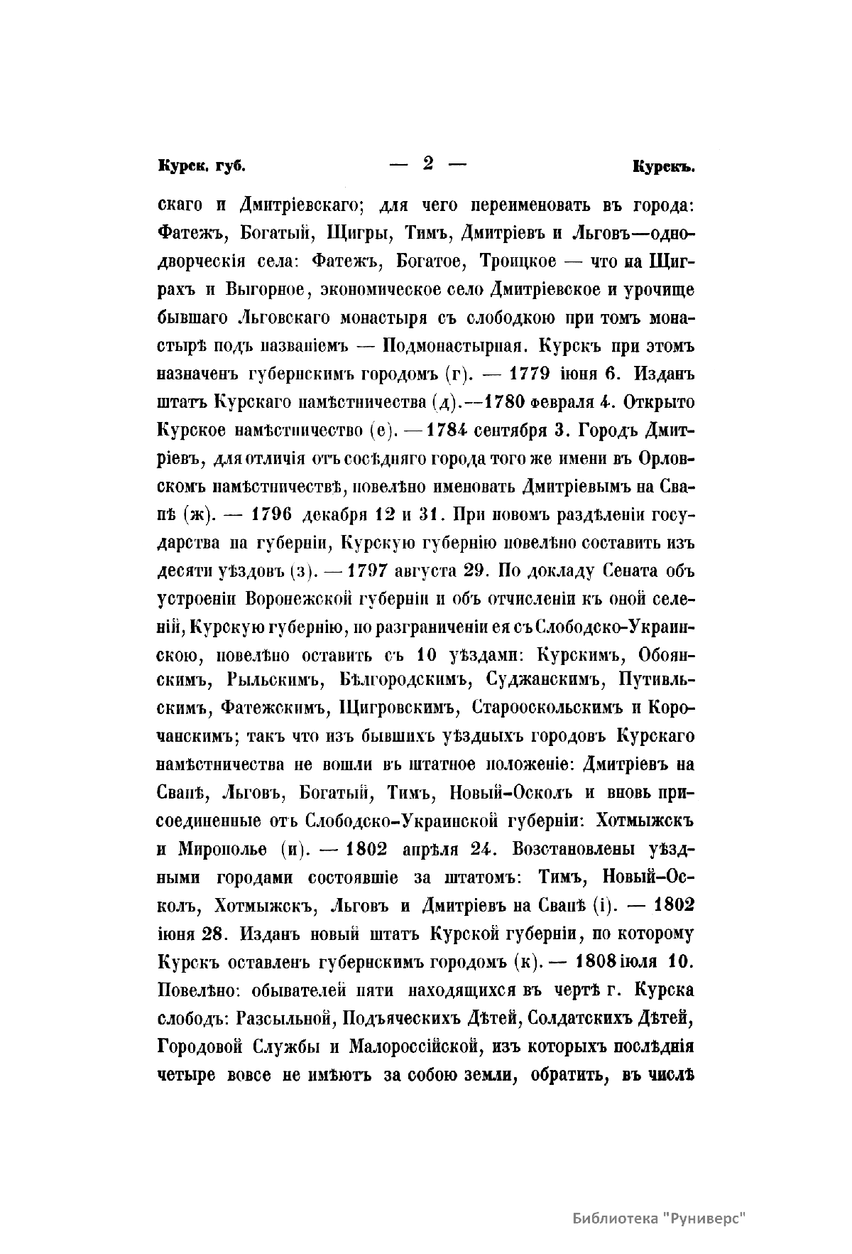 Издание заключает в себе все существующие городские поселения Российской империи, расположенные в алфавитном порядке губерний. По каждому городскому поселению указаны постановления, изданные в законодательном порядке по 1 января 1860 года. Они дают представление о значении каждого поселения в административном отношении, строительной части, городских доходах и расходах, повинностях, льготах, местных сословных правах обывателей и управления. Кроме того, по каждому городу помещаются сведения за 1858 год о населении, заимствованные из Центрального Статистического Комитета Министерства Внутренних Дел, и о количестве городских доходов и расходов, извлеченных из отчетов Городских Дум и Ратуш. Проведена обширная работа по подготовке издания. В течение нескольких лет было собрано большое количество информации для составления полного списка городских поселений. Историко-статистическое обозрение составляет восемь томов, каждый из которых посвящен отдельным губерниям. Во второй части пятого тома находится Алфавитный указатель всех имеющихся в сборнике городов с указанием томов. Шестой том посвящен Москве и городам и посадам московской губернии, а седьмой Санкт-Петербургу и городам губернии.