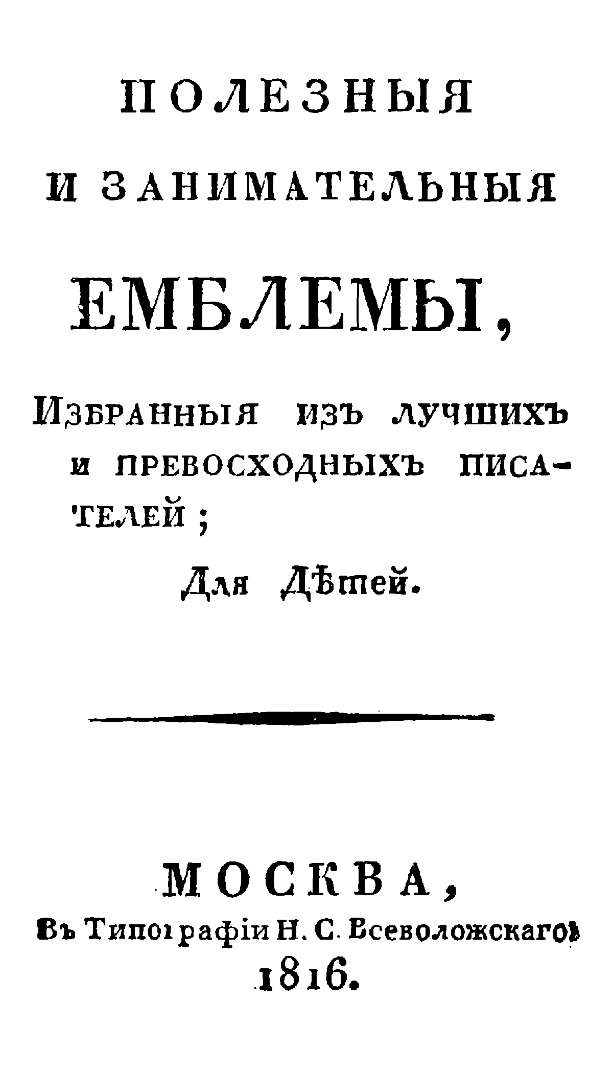 Полезныя и занимательныя емблемы, избранныя изъ лучшихъ и превосходныхъ писателей