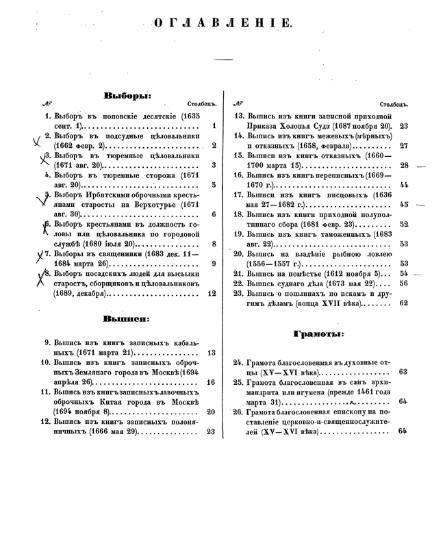 Это издание дополняет «Юридические акты» 1838 года некоторыми новыми формами старинных деловых бумаг – грамот, указов и отписок. Эти документы не имеют значения актов собственно исторических и касаются в основном частных дел, но их многочисленность и чрезвычайное разнообразие свидетельствуют о том, насколько важными они были в системе администрации Древней Руси. Кроме того, публикация актов, которые в свое время назывались «делами», даёт возможность наглядным образом изучать не только порядок старинного делопроизводства, но также личные убеждения и понятия о праве разных правительственных органов, их юридические приёмы и способ применения к делу современных требований законодательства и практики.