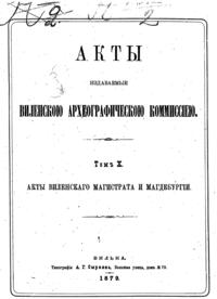 Обилие актов и документов Виленского центрального архива (19244 актовых книг) и желание исследовать прошлое Литвы, которая и в старину принадлежала России, вызвали после 1863 года учреждение особой комиссии для разбора в городе Вильне древних актов.