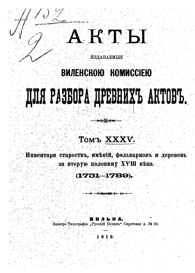 Обилие актов и документов Виленского центрального архива (19244 актовых книг) и желание исследовать прошлое Литвы, которая и в старину принадлежала России, вызвали после 1863 года учреждение особой комиссии для разбора в городе Вильне древних актов.