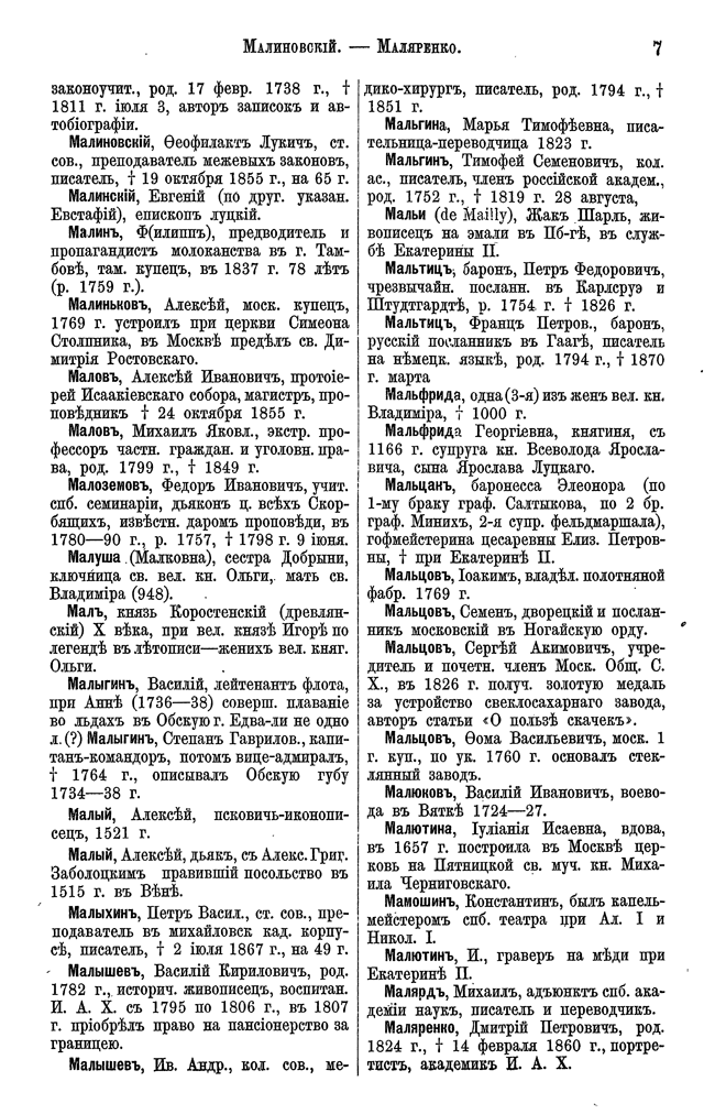 Первая попытка Русского Исторического Общества составить биографический словарь важных отечественных деятелей. Носила подготовительный характер и представляет собой просто список имен, с указанием срока жизни и основного занятия.