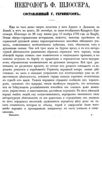 «Всемирная история» Шлоссера сыграла заметную роль в истории развития общественной мысли в России. В переводе на русский язык и популяризации его трудов принимал деятельное участие Н. Г. Чернышевский.