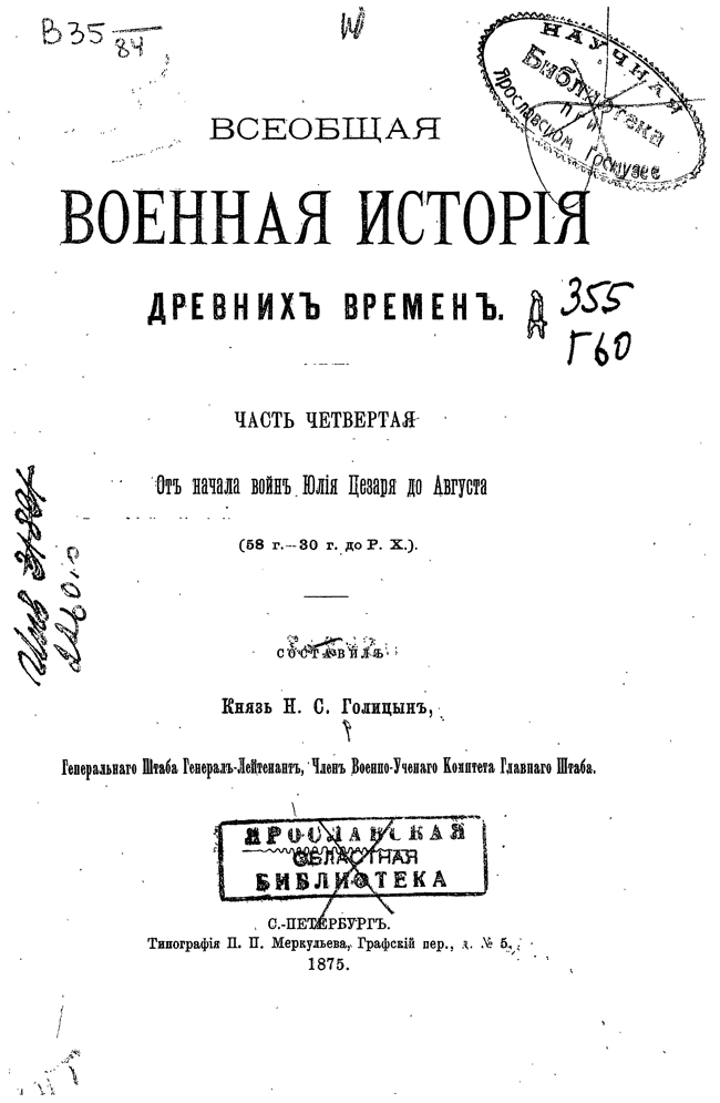 Всеобщая военная история древних времен. Часть 4. От начала войн Юлия Цезаря до Августа.