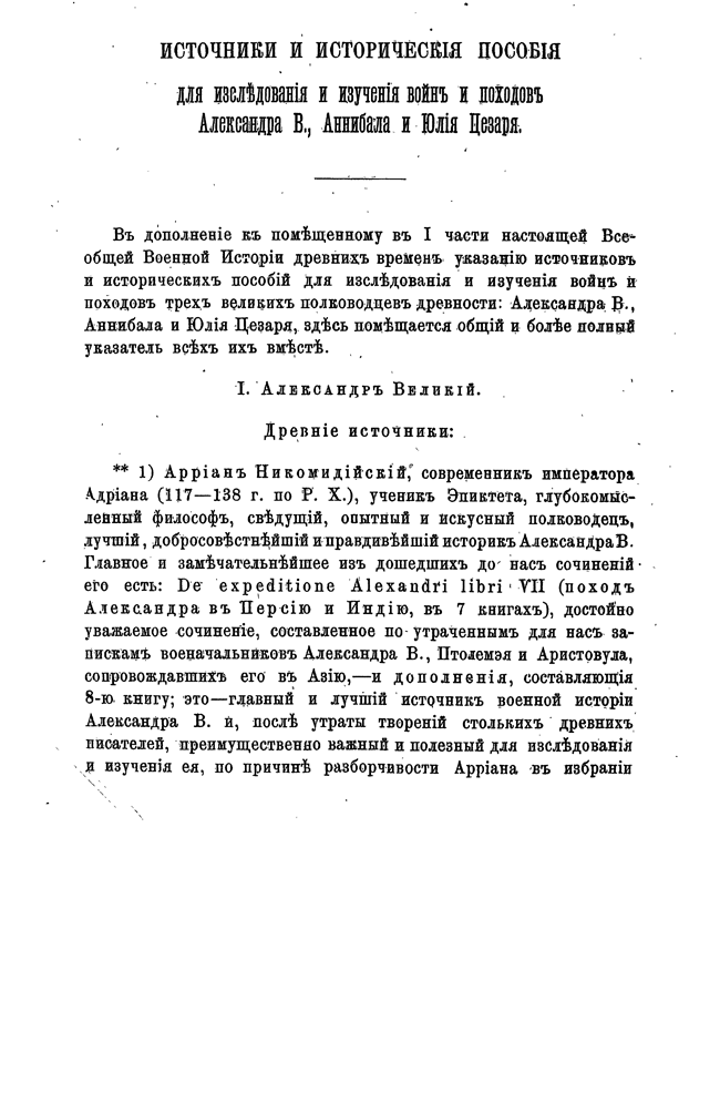 «Всеобщая военная история» представляет собой полный и подробный обзор войн и походов великих полководцев, военно-исторических событий в необходимой связи с современной автору историей: политической, военного искусства, искусства и науки ведения войны и военной литературы. «Всеобщая военная история древних времен» состоит из двух частей. Первая посвящена историческим событиям от древнейших времен до смерти Александра Великого (232 г. до н. э.). Вторая часть рассказывает об истории следующего периода — от смерти Александра Великого до падения Западной Римской Империи (323 г. до н. э. — 476 г. н. э.).