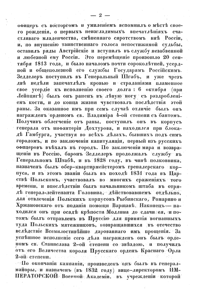 Военный энциклопедический лексикон впервые издавался с 1837 по 1850 год и насчитывает 14 основных томов и один дополнительный (вышел в 1852 г.). Этот огромный труд обязан своим появлением почти исключительно энергии и настойчивости его редактора барона Л. И. Зедделера, на котором лежала вся основная масса работы. По сути своей «Лексикон» являлся первой русской военной энциклопедией (до него выходил только двухтомный «Военный словарь» С. А. Тучкова, в 1818 г.). Несмотря на довольно холодный приём военными кругами первых выпусков «Лексикона», выходившего небольшими книжками (известно, что первая часть состояла из четырёх отдельных книжек) через значительные промежутки времени и стоившего в продаже весьма немалых денег, Зедделер настойчиво занимался его изданием, вложив, помимо личного труда, и значительную часть своего состояния, и в течение 13 лет привёл его к окончанию. Программа «Лексикона» была намечена чрезвычайно широко, имея в виду крайне низкий образовательный уровень армейского офицерства времён императора Николая I и трудность пополнения общего образования при глухих стоянках и постоянном передвижении полков с места на место. В силу этого в «Лексикон» включён ряд сведений, весьма отдалённо связанных с военным делом. Барону Зедделеру удалось привлечь к составлению «Лексикона» наиболее выдающихся военных и учёных Николаевского времени, среди которых особо выделяются К. Ф. Багговут, М. И. Богданович, К. М. Базили, А. В. Висковатов, Н. С. Голицын, А. Н. Греч, Д. А. Милютин, А. И. Михайловский-Данилевский, П. И. Рикорд и другие. Из отделов «Лексикона» наиболее полным и наиболее тщательно составленным является военно-исторический отдел; слабее всего выглядит отдел военной техники, что вполне соответствует тогдашнему её состоянию. «Лексикон» построен по алфавиту статей; к некоторым томам сделано особое «Прибавление», включающее в себя некоторые статьи, пропущенные по разным причинам в предыдущих томах. В связи с долгим изданием «Лексикона» и достаточно быстрым устареванием имеющихся в нём сведений, в 1852 г. был выпущен дополнительный том под названием «Прибавление к Военному энциклопедическому лексикону».