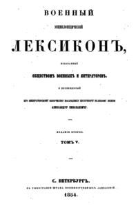 Военный энциклопедический лексикон впервые издавался с 1837 по 1850 год и насчитывает 14 основных томов и один дополнительный (вышел в 1852 г.). Этот огромный труд обязан своим появлением почти исключительно энергии и настойчивости его редактора барона Л. И. Зедделера, на котором лежала вся основная масса работы. По сути своей «Лексикон» являлся первой русской военной энциклопедией (до него выходил только двухтомный «Военный словарь» С. А. Тучкова, в 1818 г.). Несмотря на довольно холодный приём военными кругами первых выпусков «Лексикона», выходившего небольшими книжками (известно, что первая часть состояла из четырёх отдельных книжек) через значительные промежутки времени и стоившего в продаже весьма немалых денег, Зедделер настойчиво занимался его изданием, вложив, помимо личного труда, и значительную часть своего состояния, и в течение 13 лет привёл его к окончанию. Программа «Лексикона» была намечена чрезвычайно широко, имея в виду крайне низкий образовательный уровень армейского офицерства времён императора Николая I и трудность пополнения общего образования при глухих стоянках и постоянном передвижении полков с места на место. В силу этого в «Лексикон» включён ряд сведений, весьма отдалённо связанных с военным делом. Барону Зедделеру удалось привлечь к составлению «Лексикона» наиболее выдающихся военных и учёных Николаевского времени, среди которых особо выделяются К. Ф. Багговут, М. И. Богданович, К. М. Базили, А. В. Висковатов, Н. С. Голицын, А. Н. Греч, Д. А. Милютин, А. И. Михайловский-Данилевский, П. И. Рикорд и другие. Из отделов «Лексикона» наиболее полным и наиболее тщательно составленным является военно-исторический отдел; слабее всего выглядит отдел военной техники, что вполне соответствует тогдашнему её состоянию. «Лексикон» построен по алфавиту статей; к некоторым томам сделано особое «Прибавление», включающее в себя некоторые статьи, пропущенные по разным причинам в предыдущих томах. В связи с долгим изданием «Лексикона» и достаточно быстрым устареванием имеющихся в нём сведений, в 1852 г. был выпущен дополнительный том под названием «Прибавление к Военному энциклопедическому лексикону».