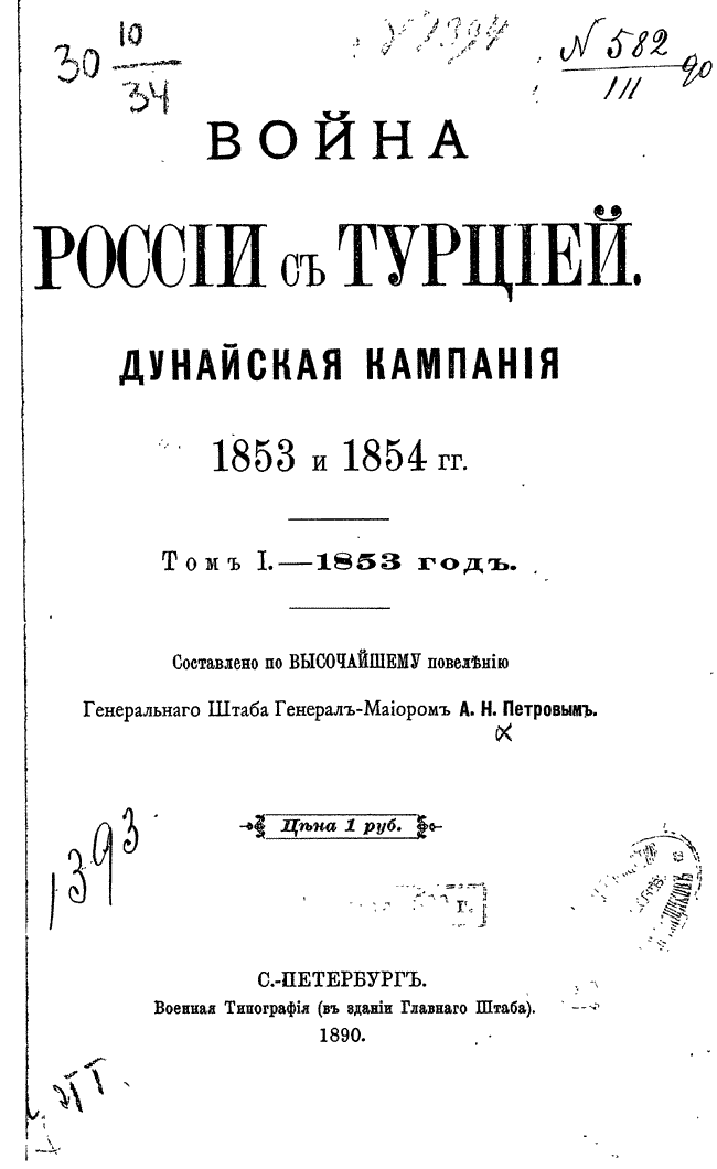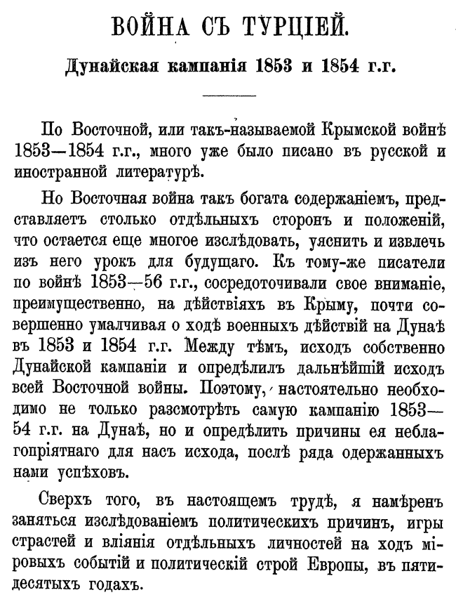 Война России с Турцией. Дунайская кампания 1853 и 1854 гг.